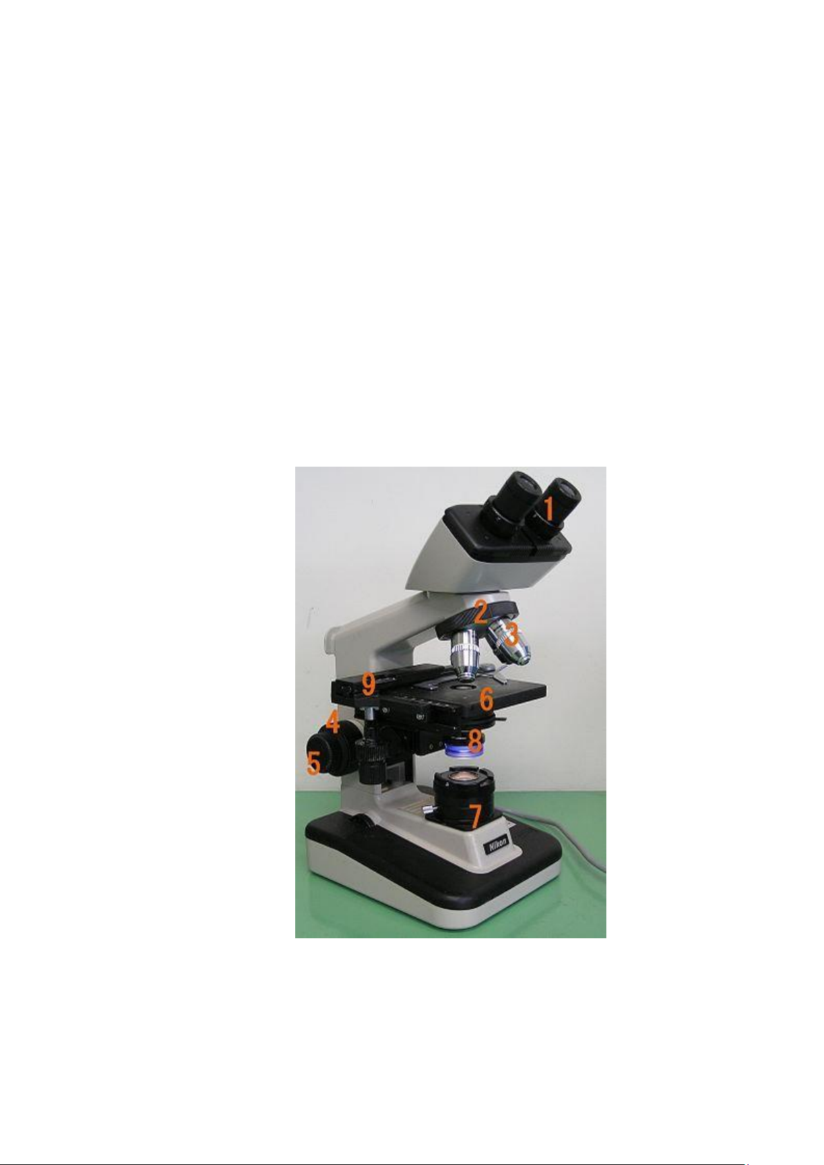 Hình 1.1: Kính hiển vi quang học: Chú thích: 1. Thị kính. lOMoAR cPSD| 61155494 2. Chân vật kính.
