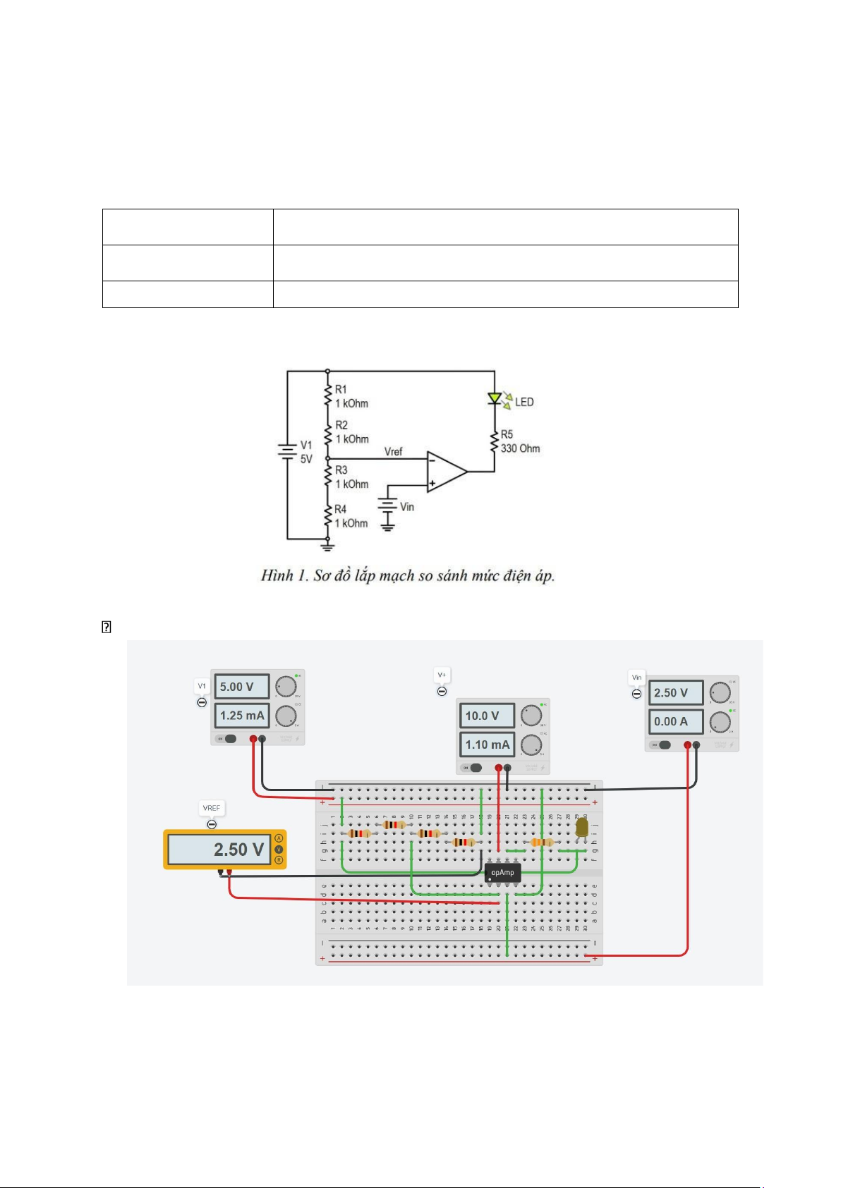 Bài 1: Xây dựng và phân tích cách hoạt động của mạch so sánh mức điện áp theo