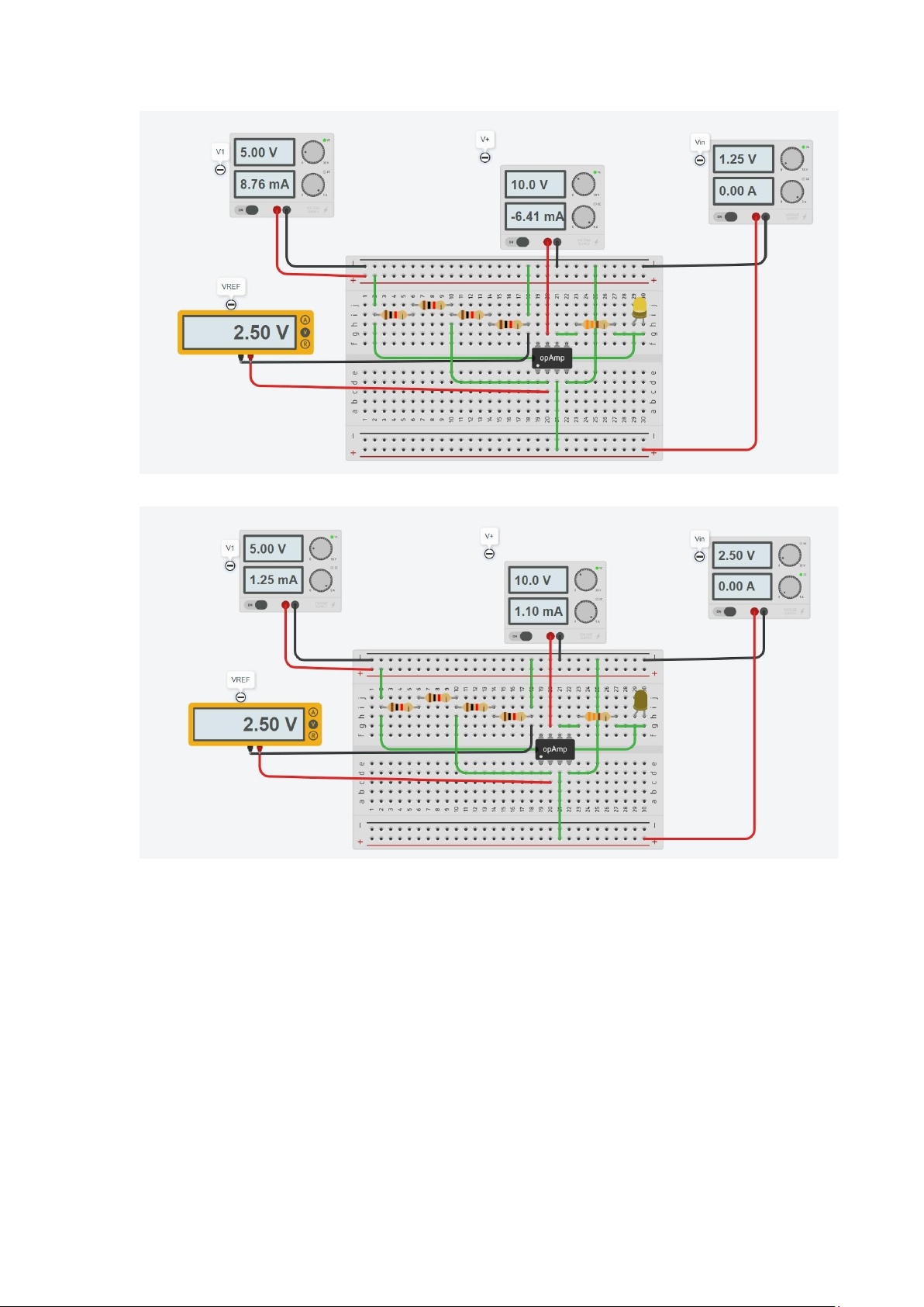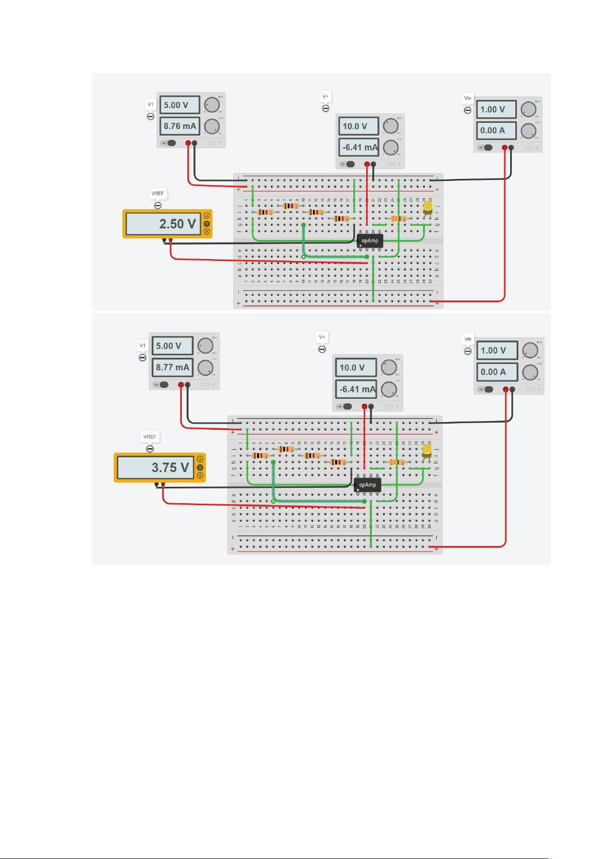 VREF, đồng thời quan sát sự bật/tắt của LED. Giải thích hiện tượng. Khi Vin =0V: Khi Vin=1.25V: lOMoAR cPSD| 61548706 Khi V=2.5V: Khi V=3.75V: lOMoAR cPSD| 61548706 Khi V=5V: