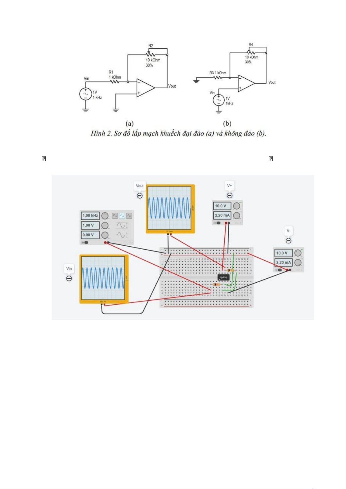 Bài 2: Xây dựng và phân tích hoạt động của mạch khuếch đại đảo và không đảo