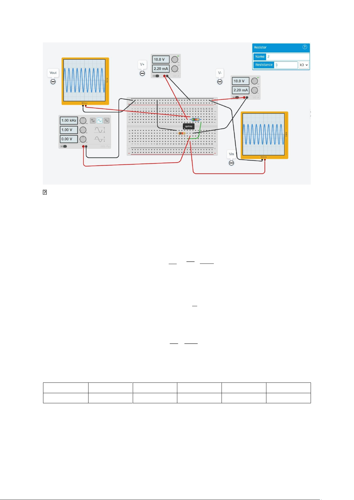 máy tạo xung để tạo tín hiệu vào Vin. Thiết lập biên độ 1V, tần số 1 kHz. lOMoAR cPSD| 61548706