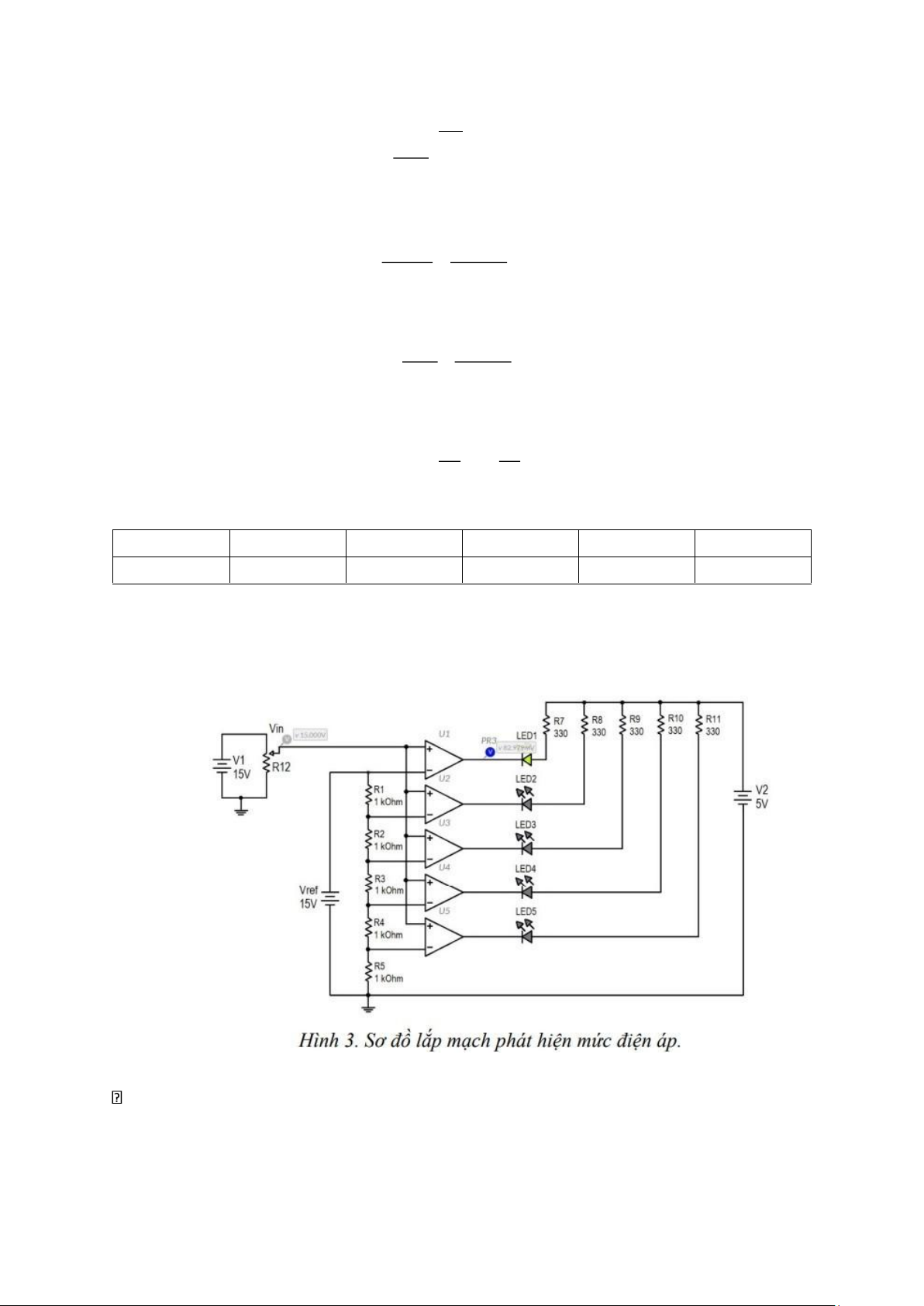 - V2 < 12V thì LED 2 sáng - V3 < 9V thì LED 3 sáng lOMoAR cPSD| 61548706 - V4 < 6V thì LED 4 sáng - V5 < 3V thì LED 5 sáng