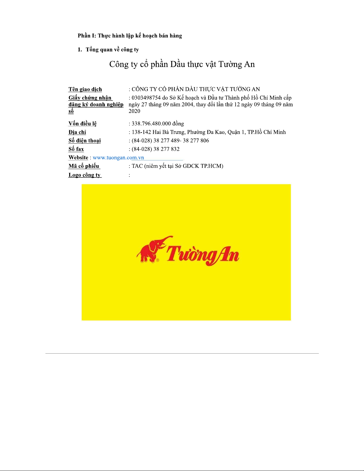 Phần 1: Thực hành lập kế hoạch bán hàng | Tài liệu học tập thực hành quản trị bán hàng