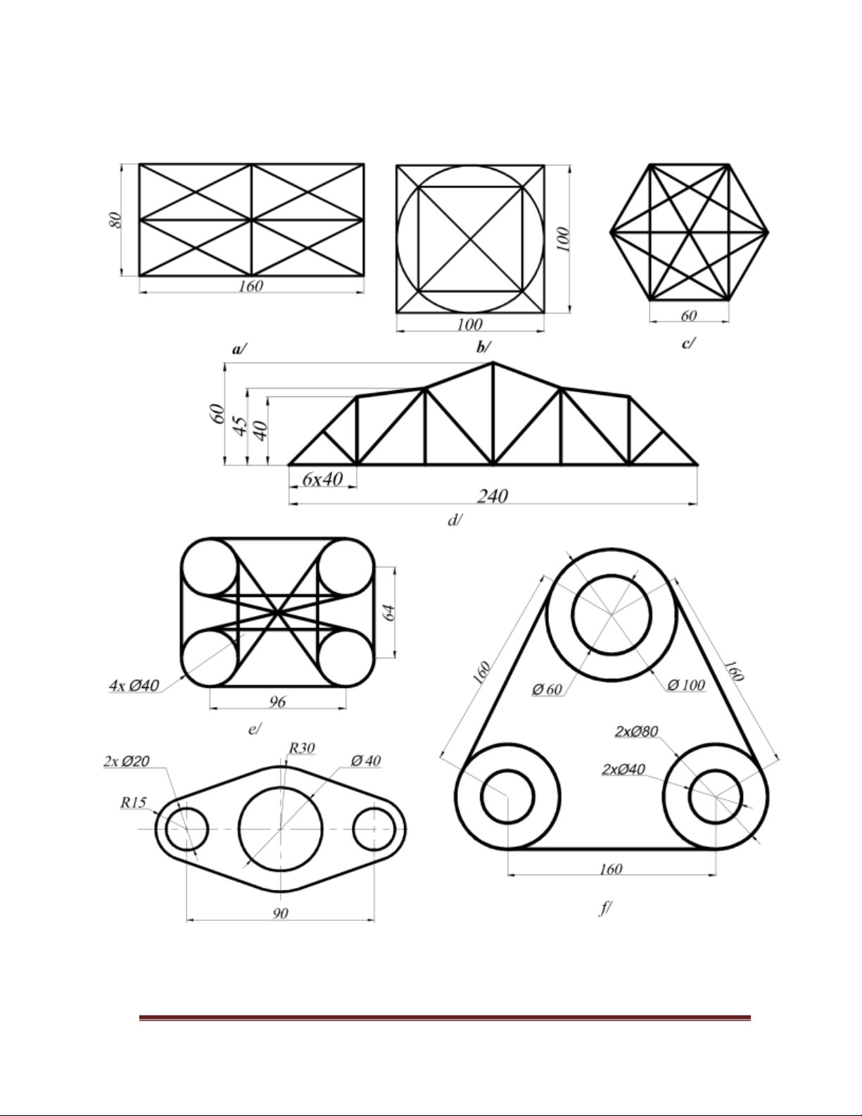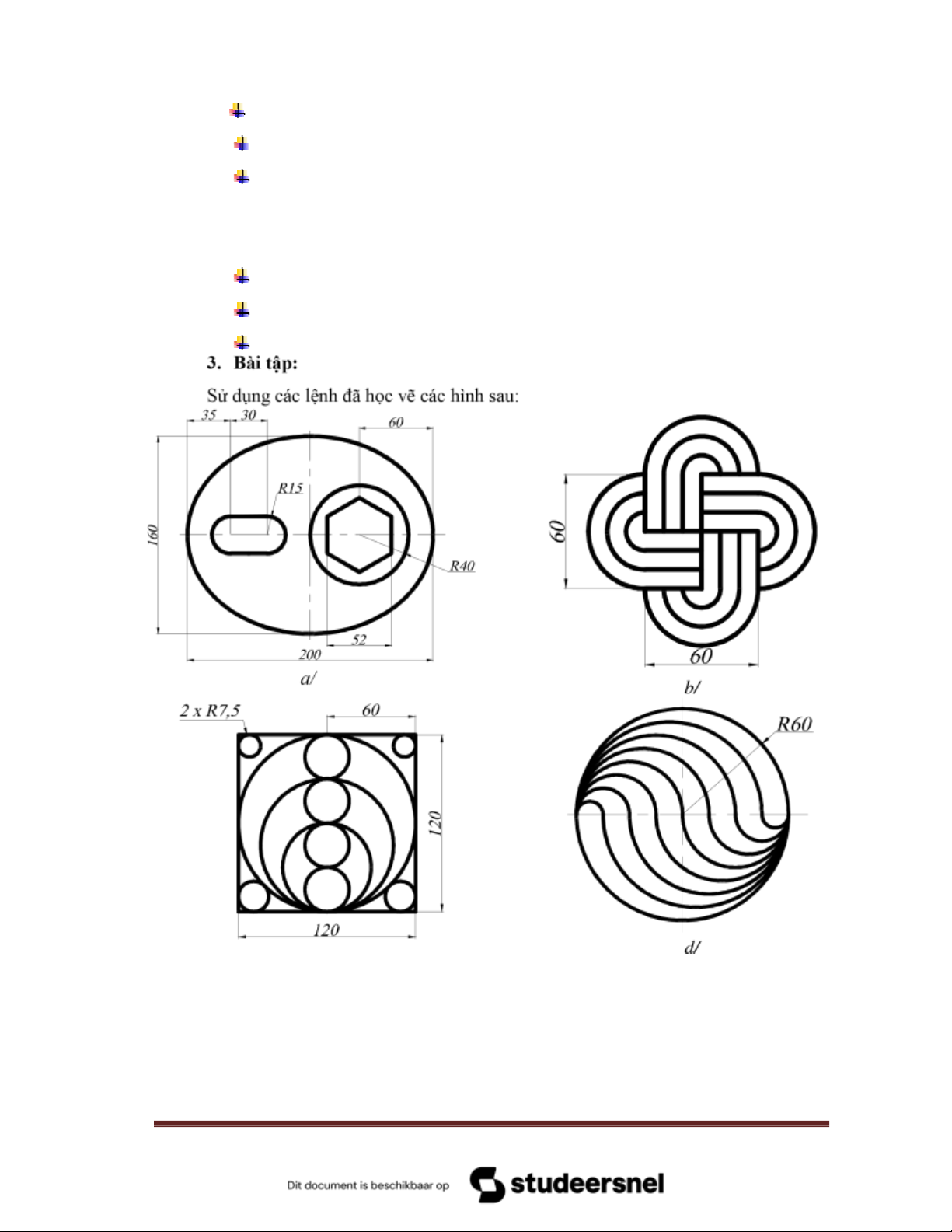 Sử dụng các lệnh hiệu chỉnh như mục 1 và các lệnh vẽ hình đã học ở những bài trước, thực hiện các hình sau: c/ d/