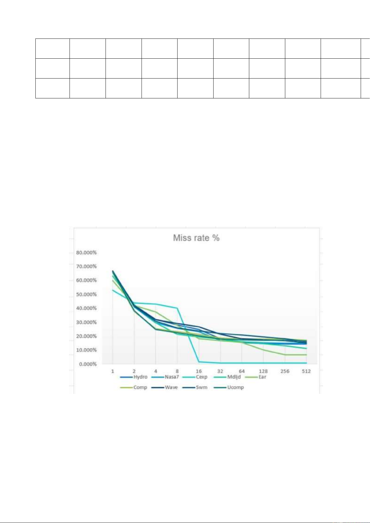 Hydro, Nasa7, Cexp, Mdljd, Ear, Comp, Wave, Swm và Ucomp và ghi vào file MS Excel: Memory Traces Miss Rate Hydro 18.195 % Nasa7 17.035 % Cexp 0.77 % Ear 16.993 % Comp 18.661 % Swm 21.985 % 1 lOMoAR cPSD| 59908026 Ucomp 17.892 % 3. Phân tích kết quả: