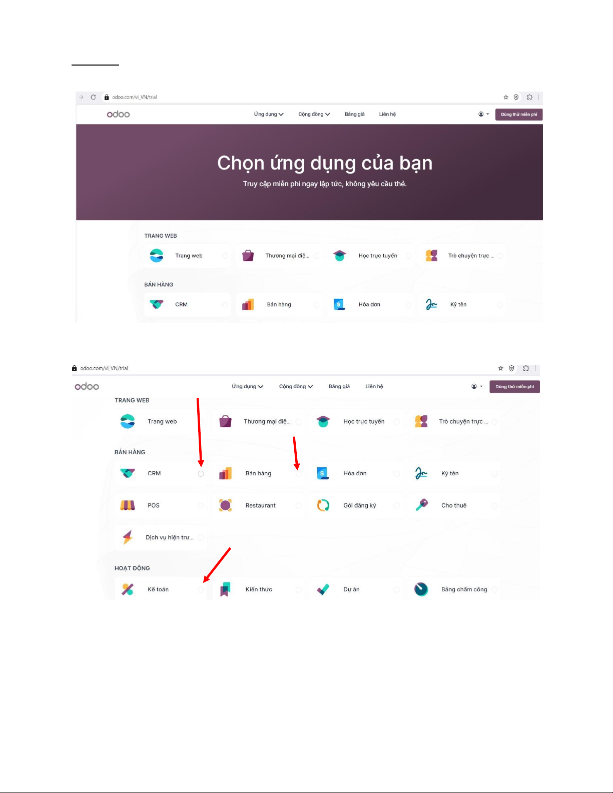phân hệ, ví dụ CRM, Bán hàng, Kế toán,… Click ch ọ
