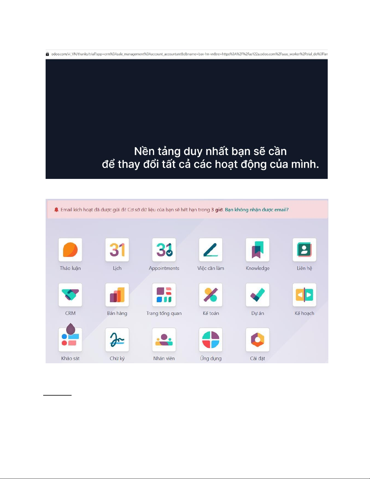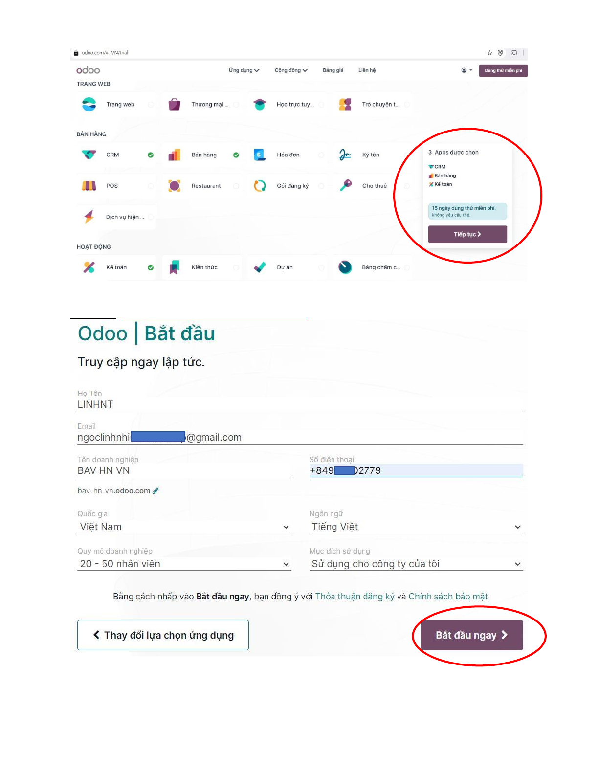 Bước 1: Các em truy cập link: https://www.odoo.com/vi_VN
