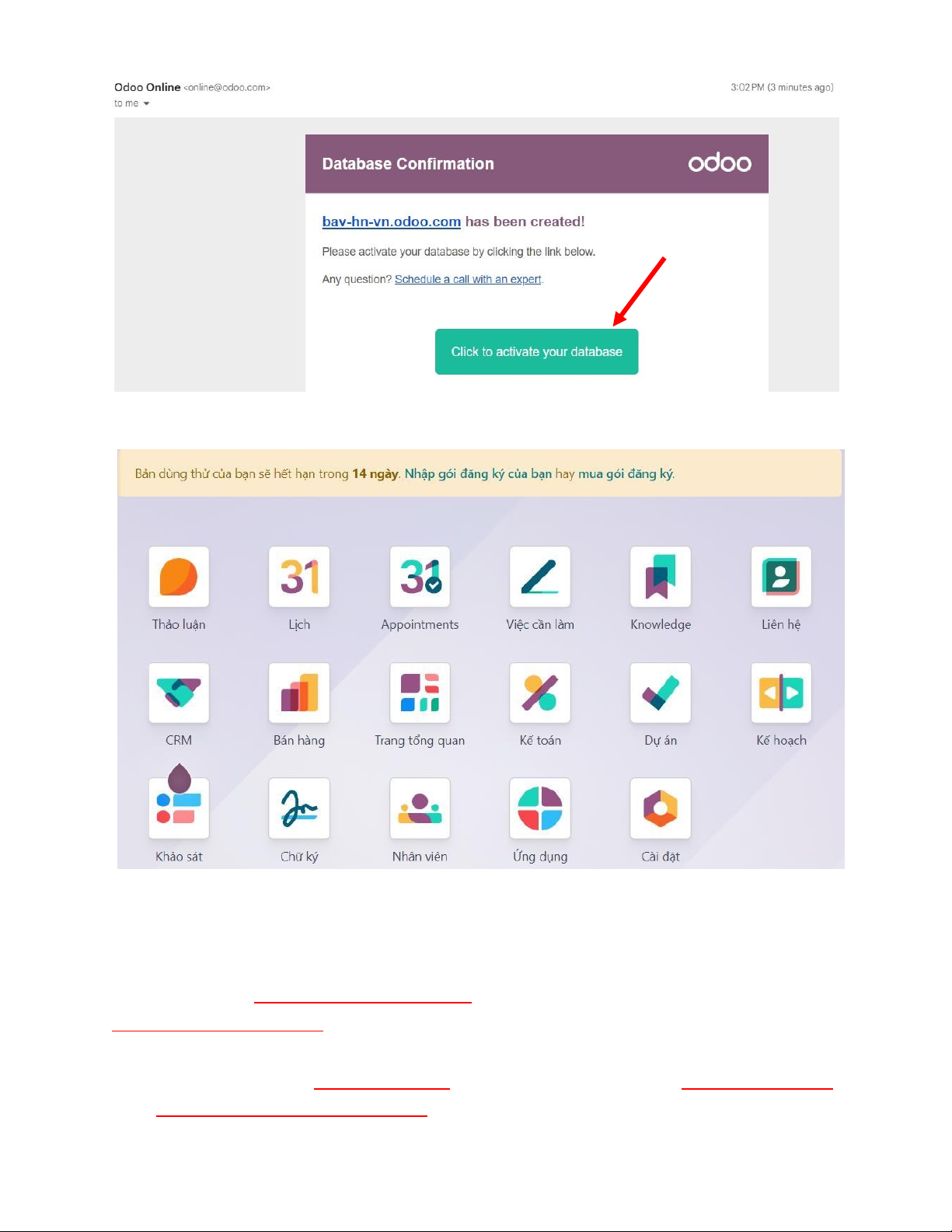 Bước 4: Mở email để kích hoạt database