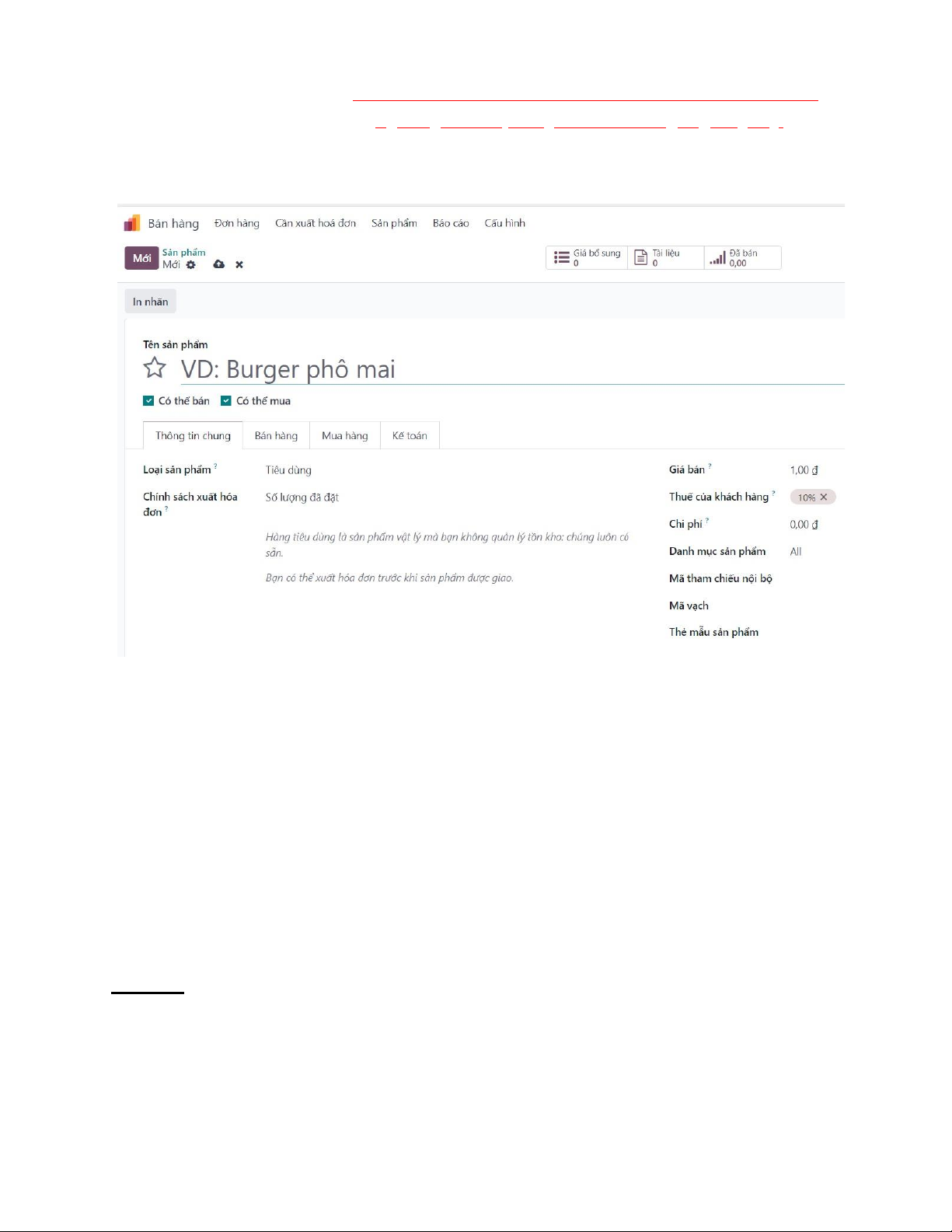 Ví dụ Click vào Phân hệ Bán hàng/ Sản phẩm: