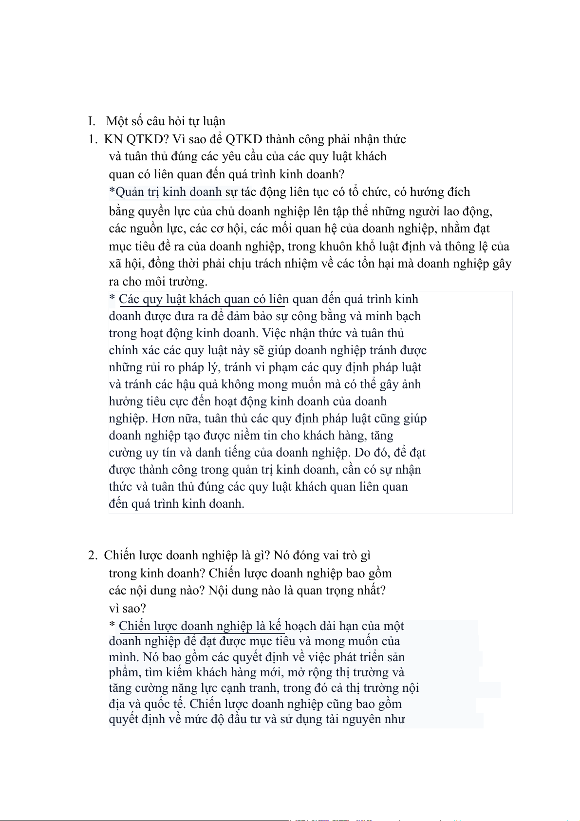 1. KN QTKD? Vì sao để QTKD thành công phải nhận thức