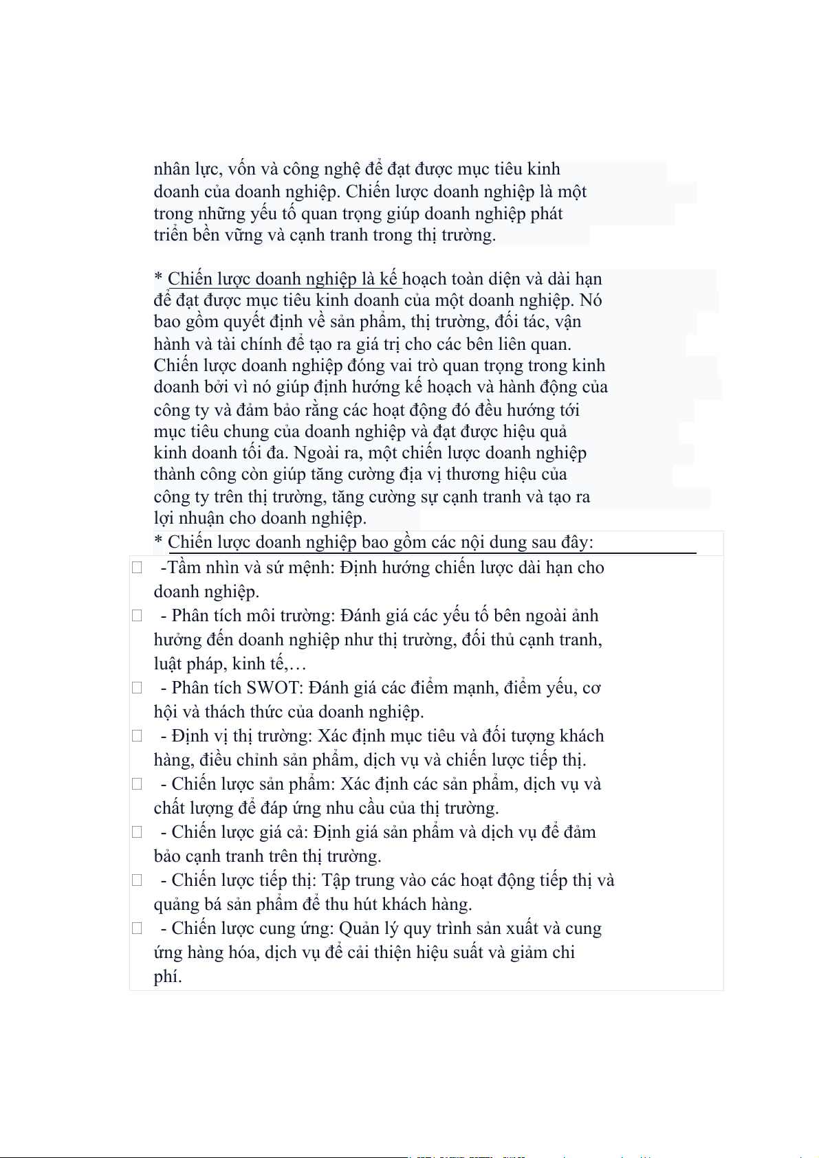 * Chiến lược doanh nghiệp bao gồm các nội dung sau đây: