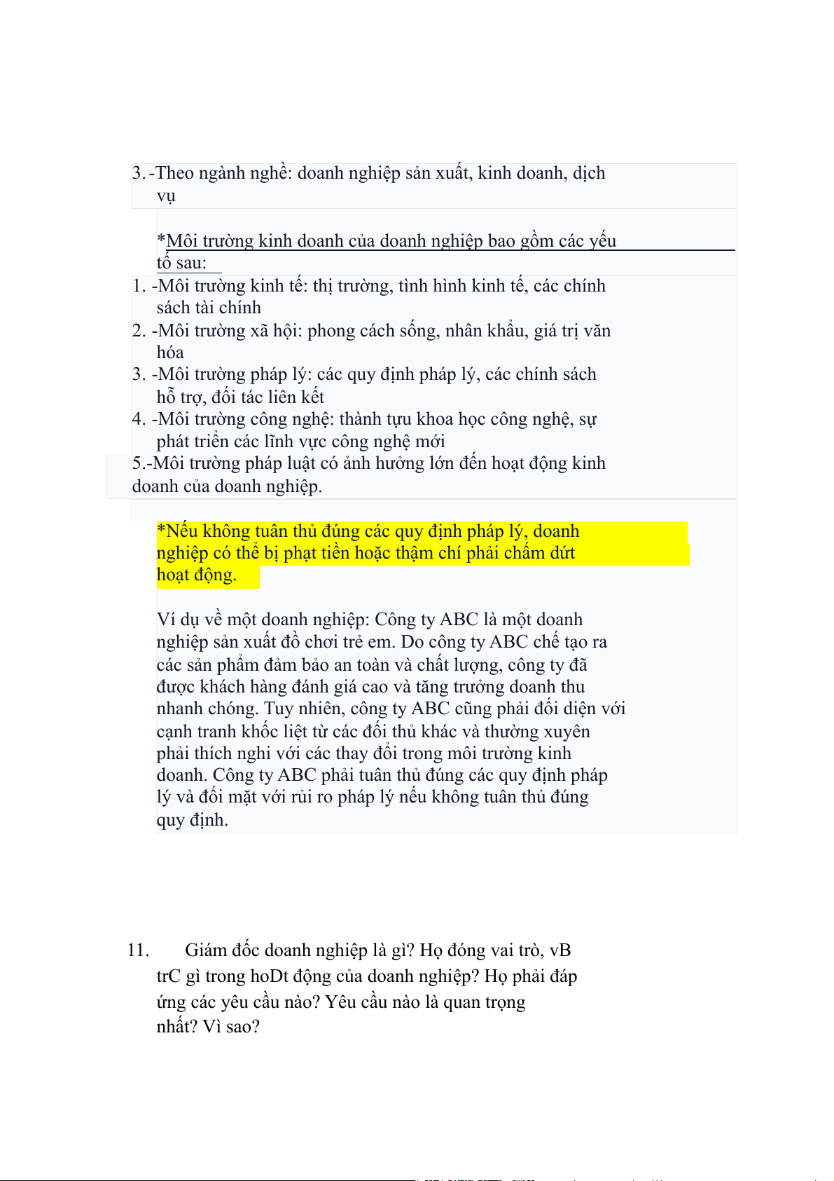 1. * Giám đốc doanh nghiệp là người đứng đầu và có trách
