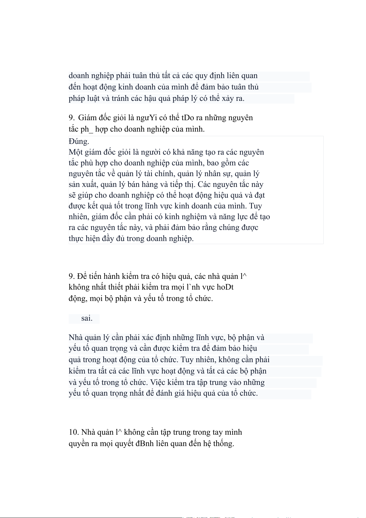 9. Để tiến hành kiểm tra có hiệu quả, các nhà quản l^