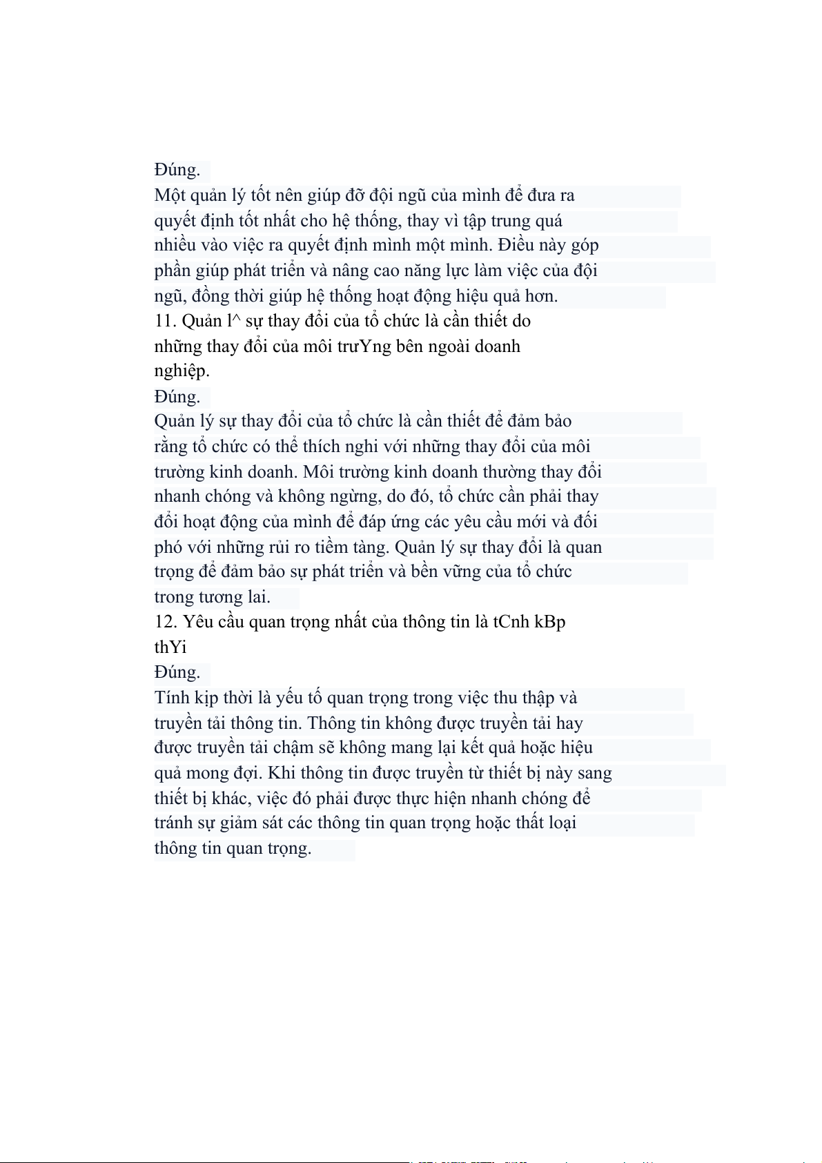 11. Quản l^ sự thay đổi của tổ chức là cần thiết do