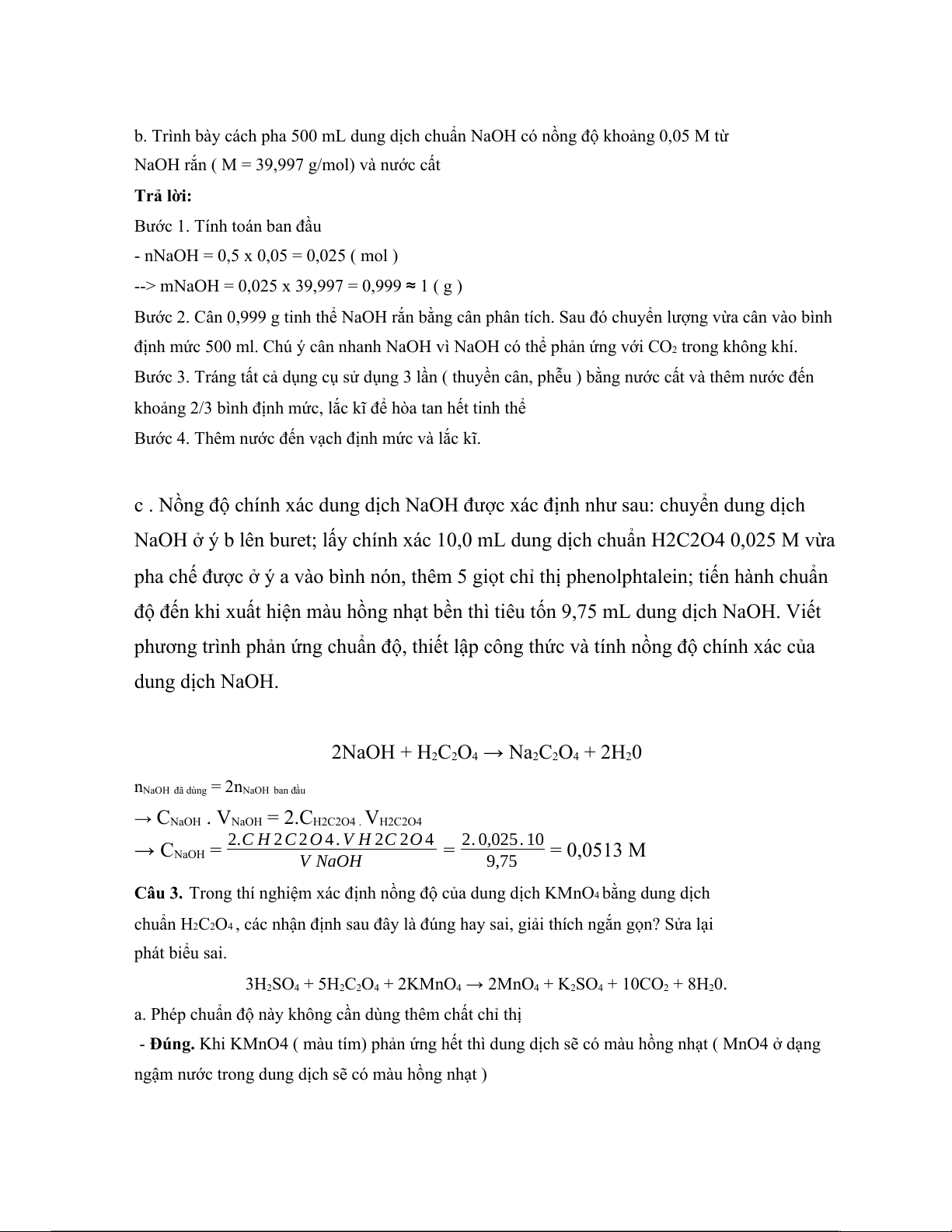 c . Nồng độ chính xác dung dịch NaOH được xác định như sau: chuyển dung dịch