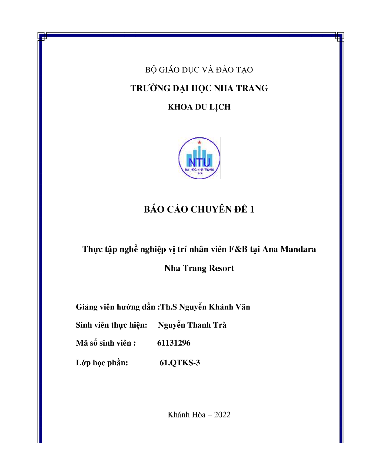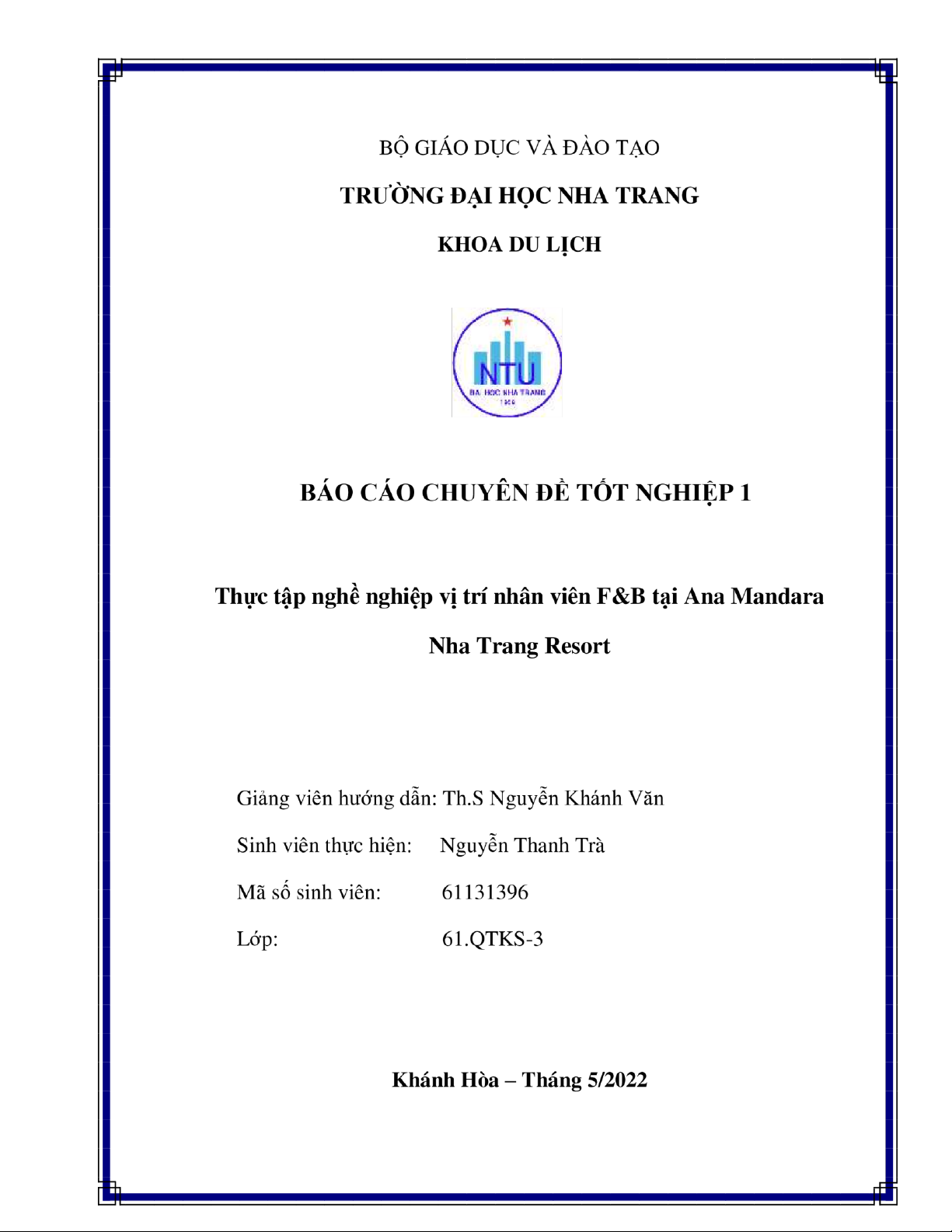 Ana Mandara Nha Trang Resort ” là bài báo cáo thực tập của bản thân sau quá trình thực