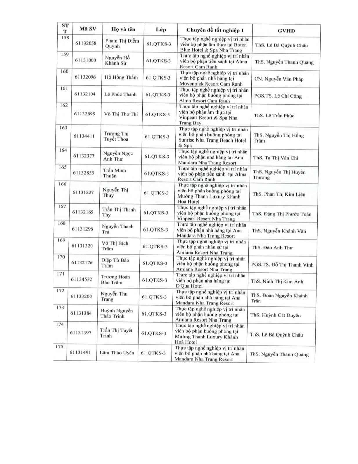 61 Ngành: Quản trị khách sạn Lần KT Ngày Nội dung