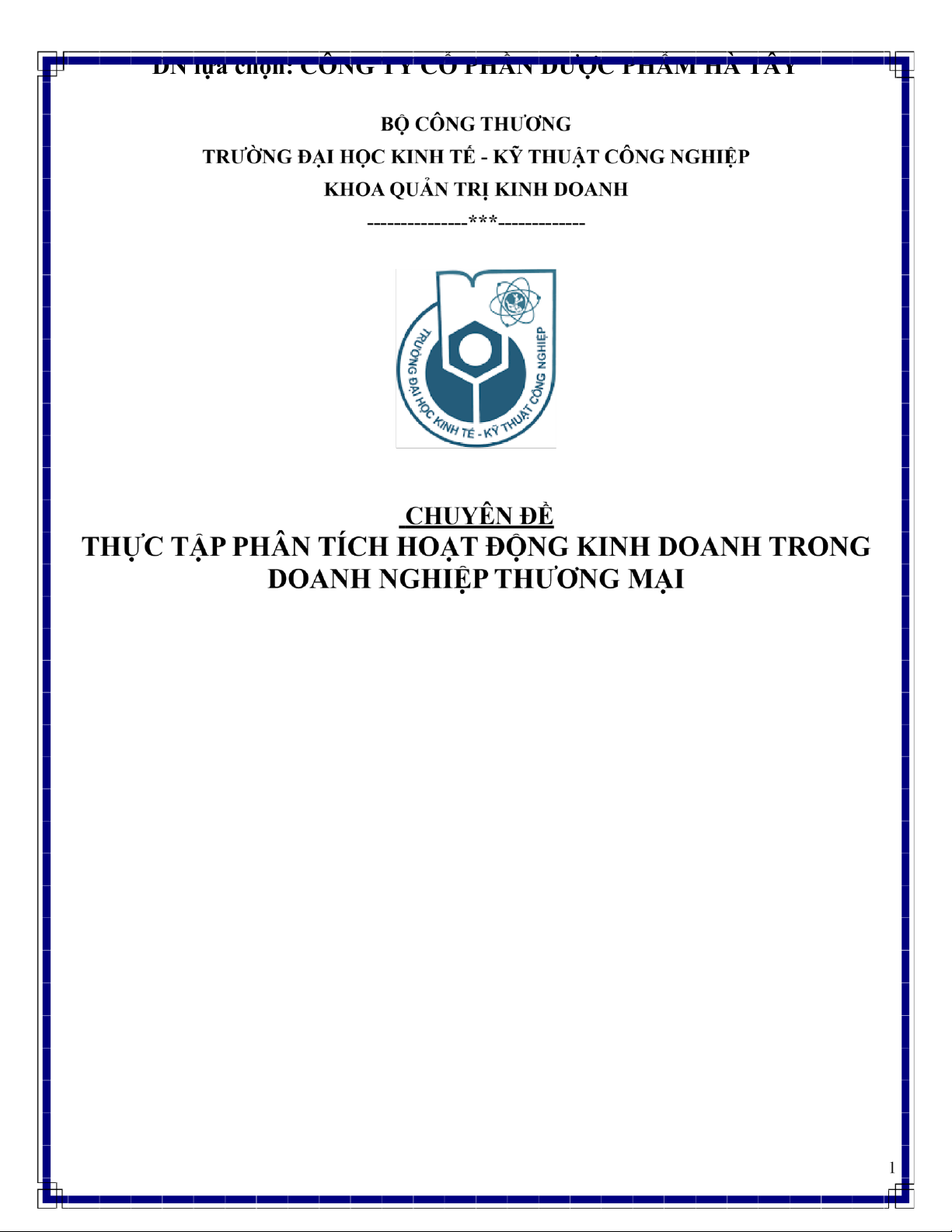 DN lựa chọn: CÔNG TY CỔ PHẦN DƯỢC PHẨM HÀ TÂY lOMoAR cPSD| 40551442 Thực hiện bởi : Phùng Thị Thu Phương Mã sinh viên 18107200009 Lớp : DHTM12A2HN Ngành : Kinh doanh thương mại