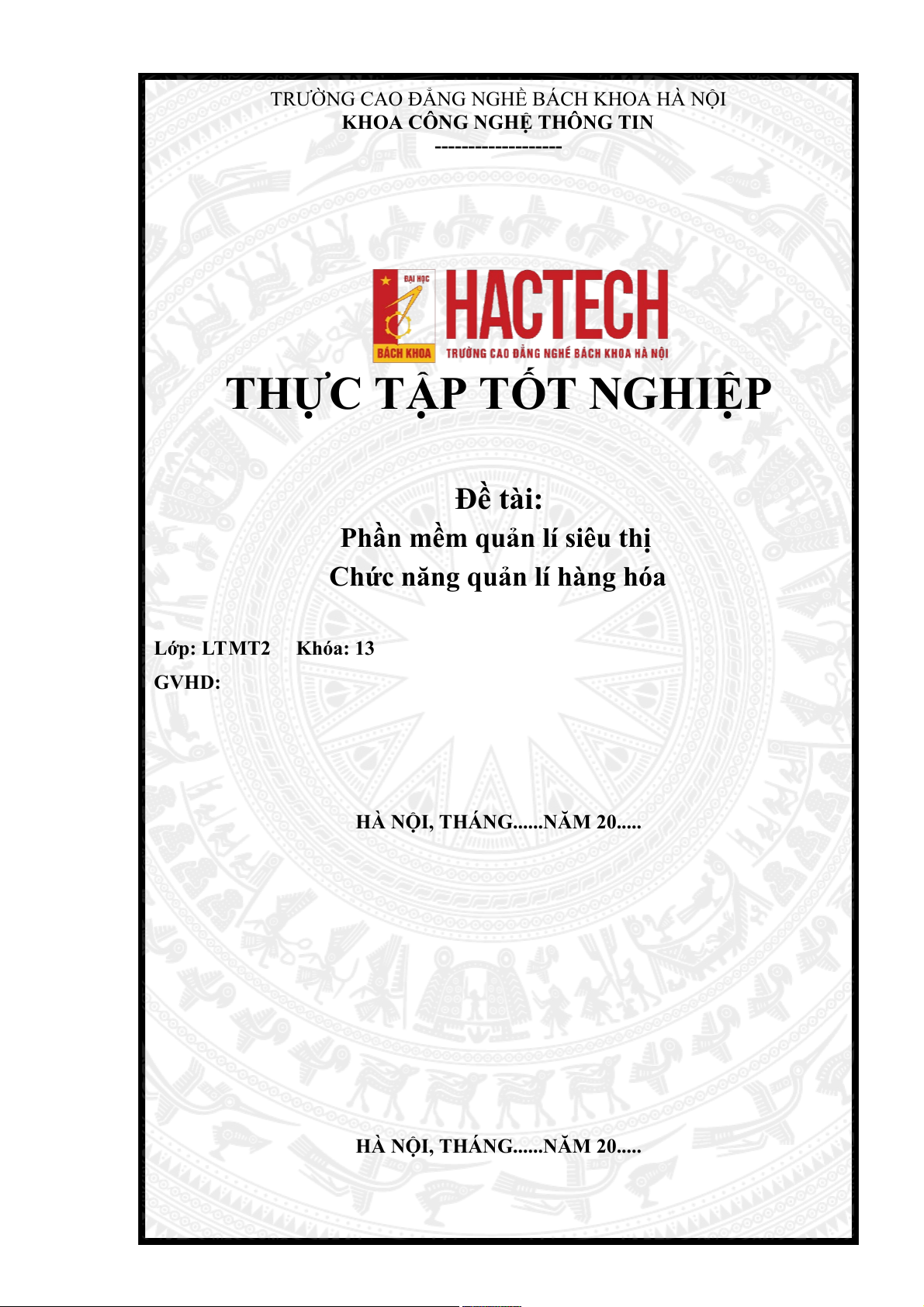 HÀ NỘI, THÁNG......NĂM 20.....