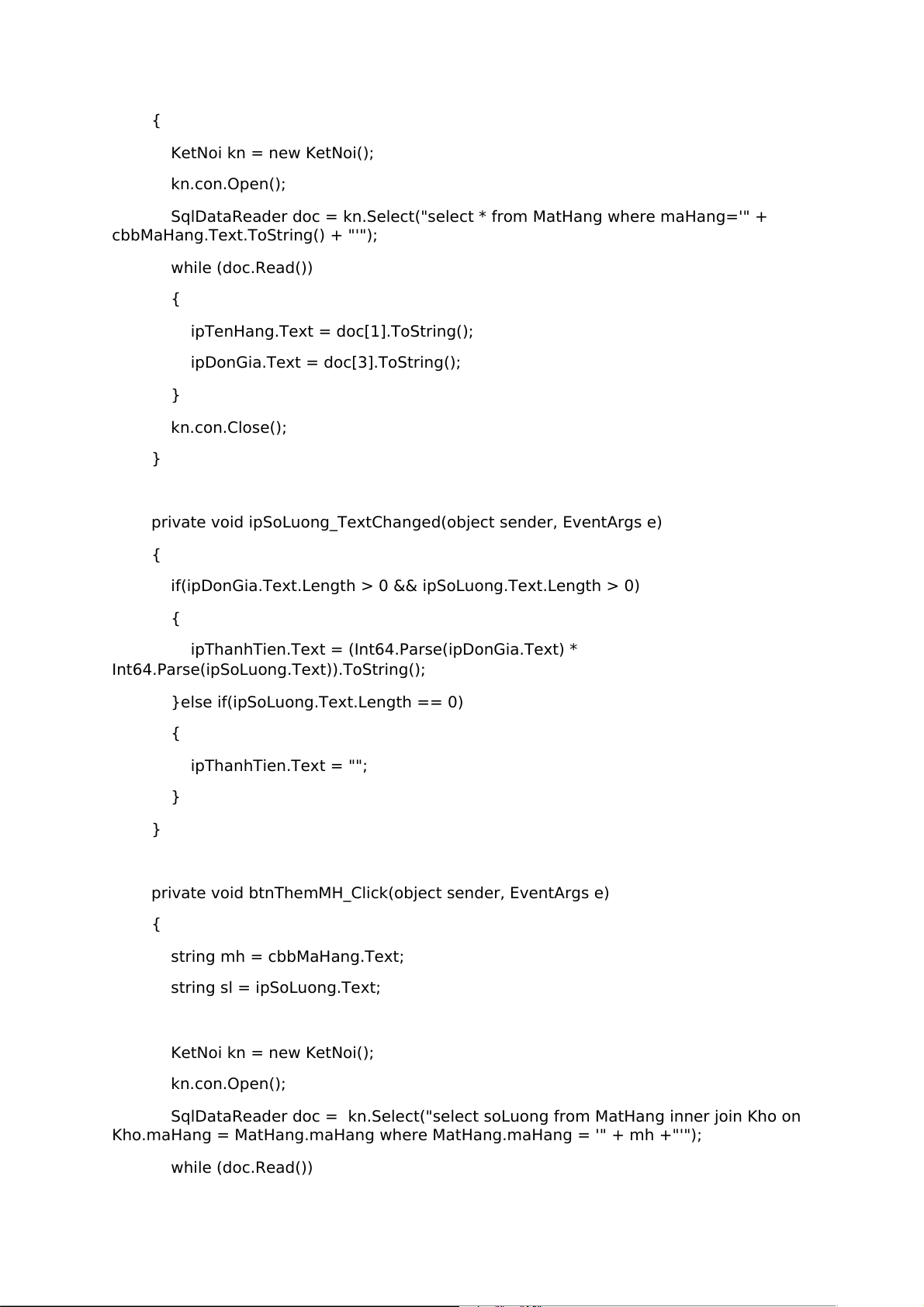 private void textBox4_TextChanged(object sender, EventArgs e) { } KetNoi kn = new KetNoi();