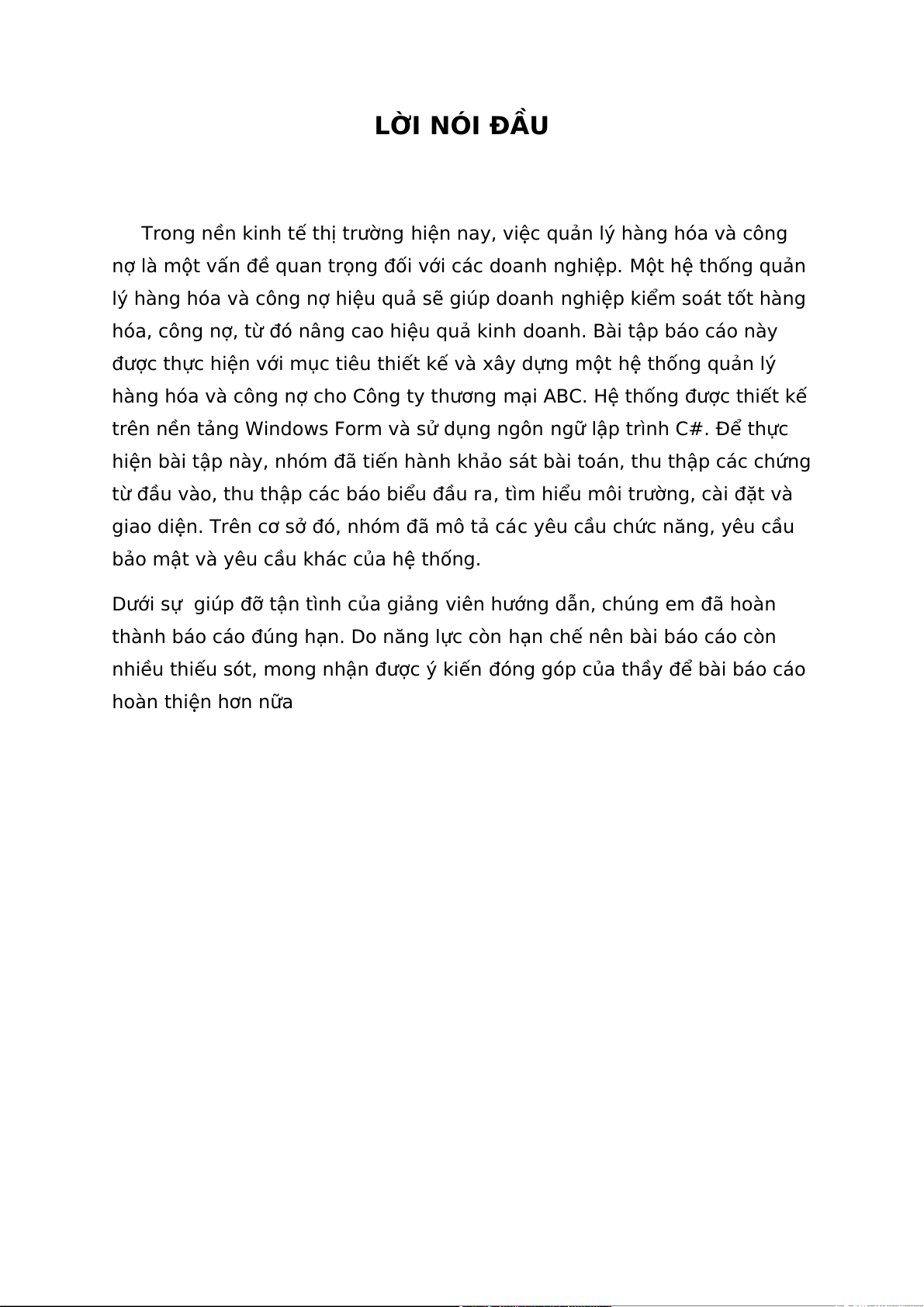 thành báo cáo đúng hạn. Do năng lực còn hạn chế nên bài báo cáo còn