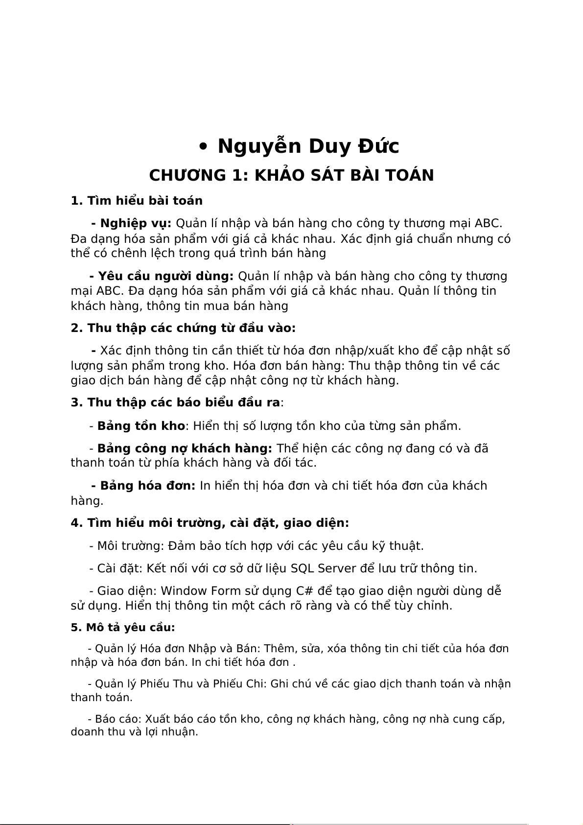 - Yêu cầu người dùng: Quản lí nhập và bán hàng cho công ty thương