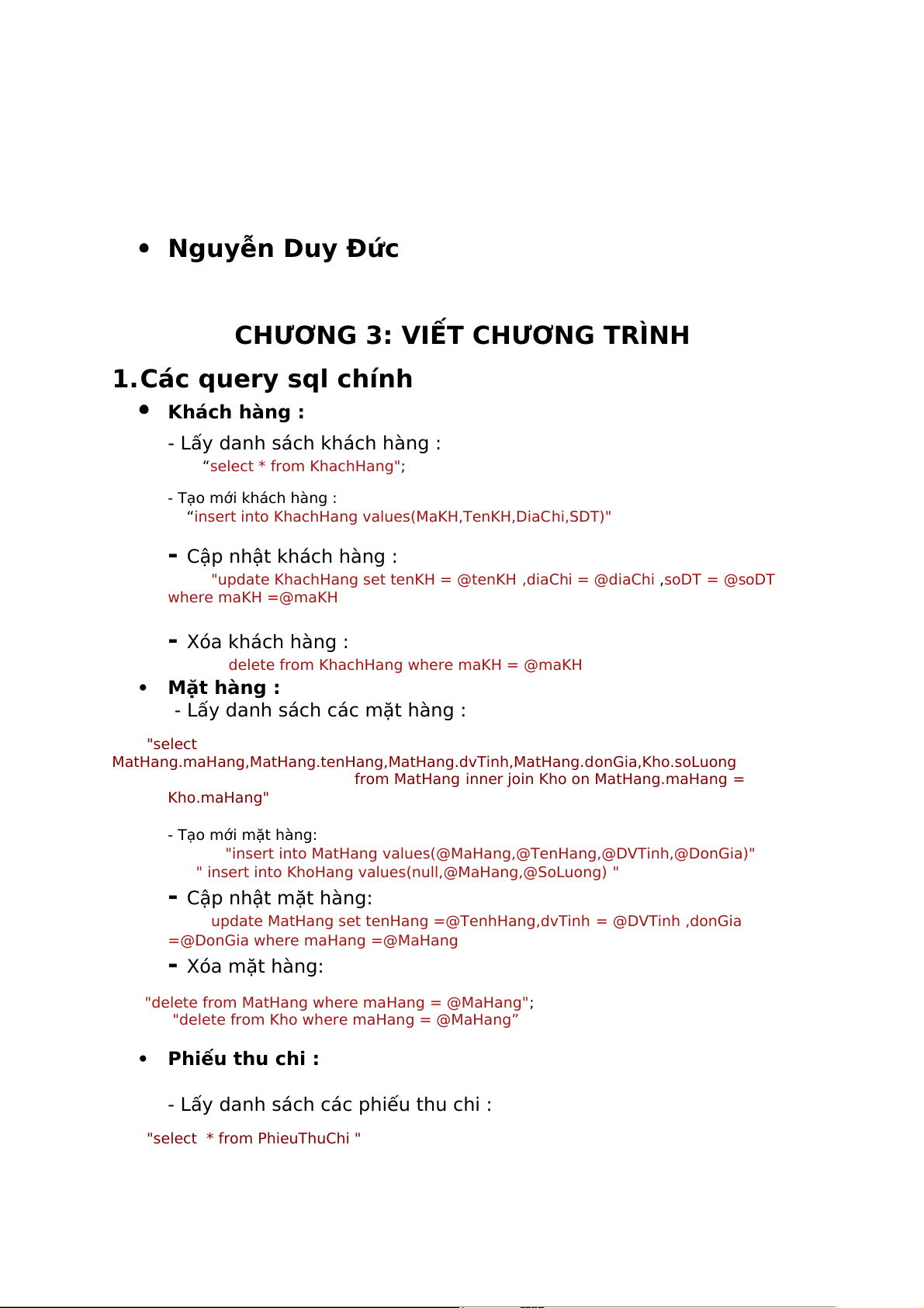 CHƯƠNG 3: VIẾT CHƯƠNG TRÌNH 1.Các query sql chính Khách hàng :