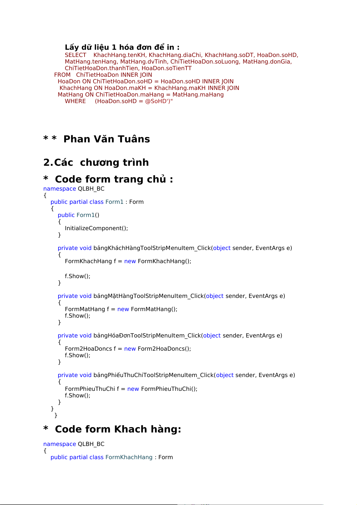 FormPhieuThuChi f = new FormPhieuThuChi(); f.Show(); } }} * Code form Khach hàng: namespace QLBH_BC {