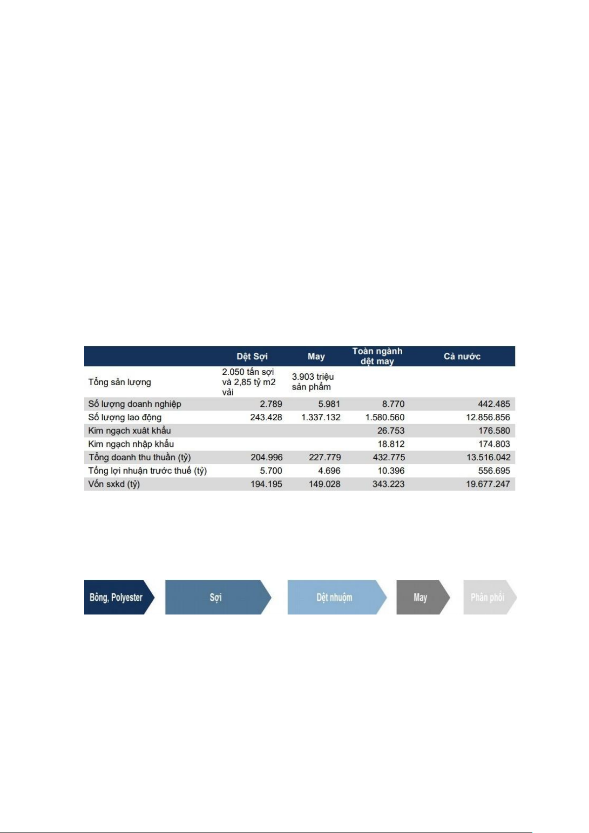 Nguồn: FPTS tổng hợp. Chuỗi giá trị ngành dệt may Việt Nam: