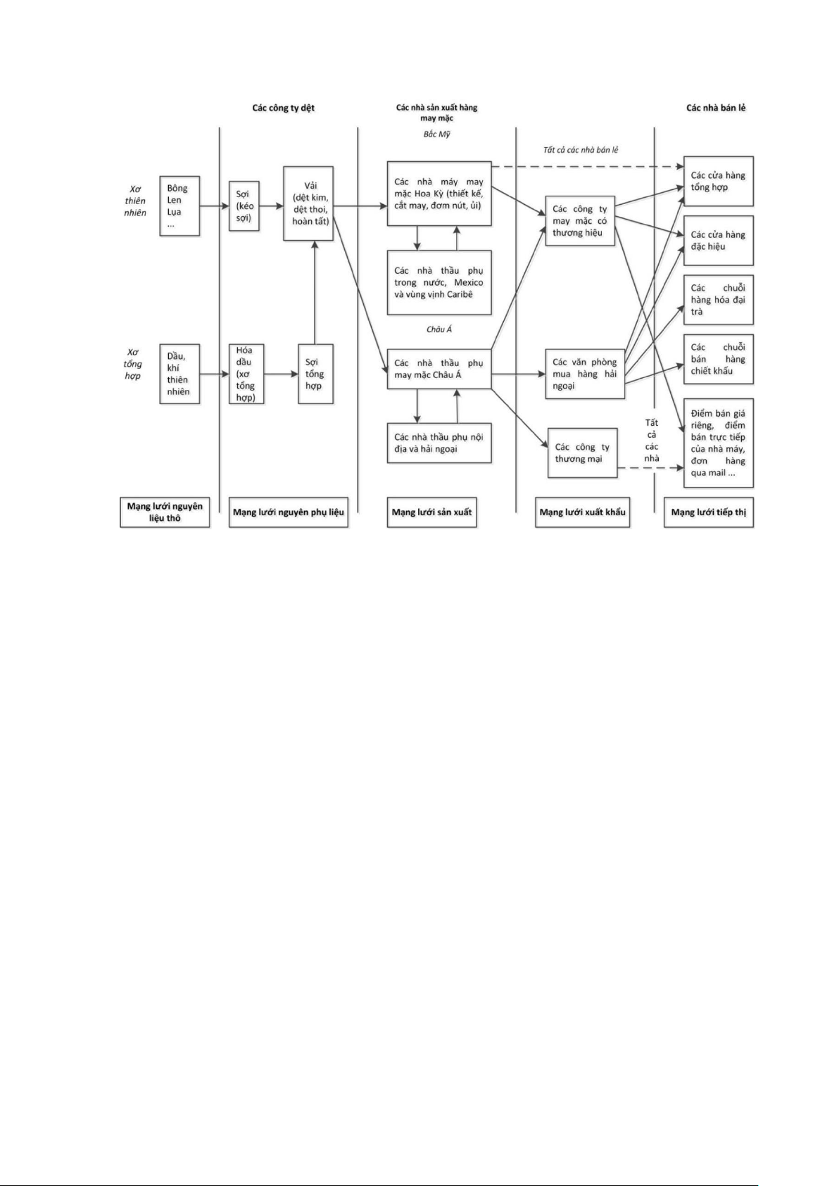 xích sản xuất ngành dệt may Việt Nam so với thế giới, ta có thể thấy trong khi mắt xích