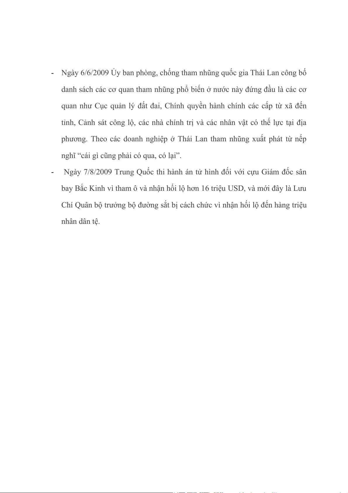 - Tính chất, mức độ tham nhũng ở mỗi quốc gia là có khác nhau, tùy thuộc