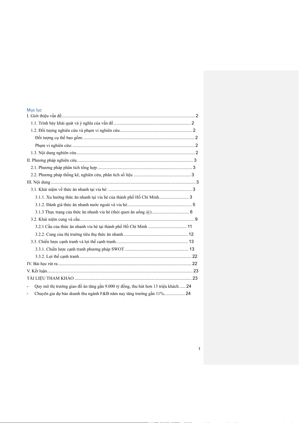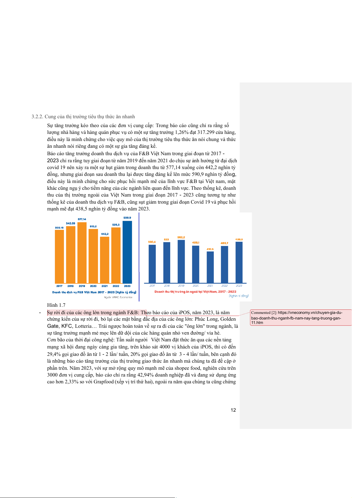 - Chuyên gia dự báo doanh thu ngành F&B năm nay tăng trưởng gần 11%................. 24 1 I. Giới thiệu vấn đề