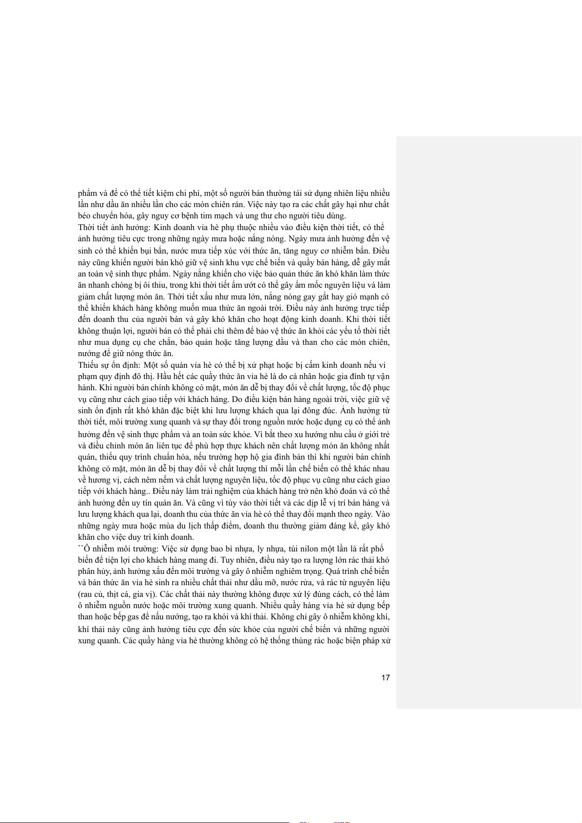 xung quanh. Các quầy hàng vỉa hè thường không có hệ thống thùng rác hoặc biện pháp xử 17
