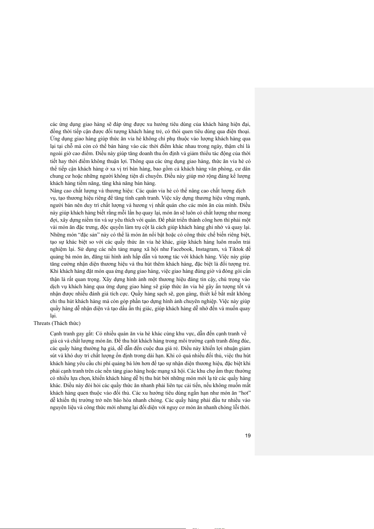 quầy hàng dễ nhận diện và tạo dấu ấn thị giác, giúp khách hàng dễ nhớ đến và muốn quay lại. Threats (Thách thức)
