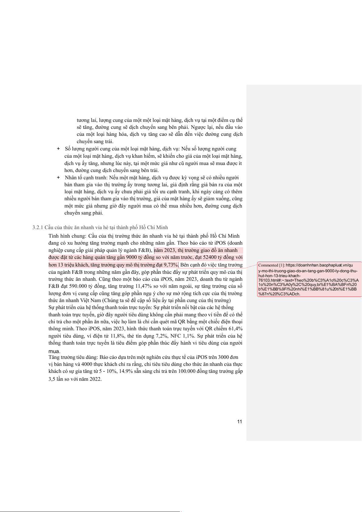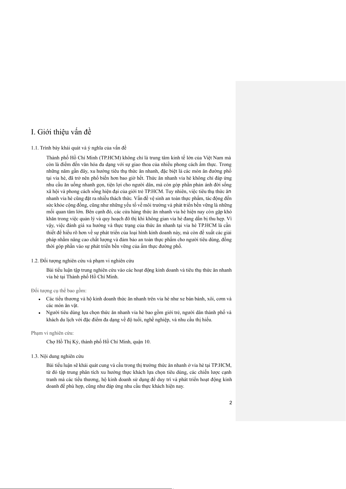 Bài tiểu luận sẽ khái quát cung và cầu trong thị trường thức ăn nhanh ở vỉa hè tại TP.HCM,