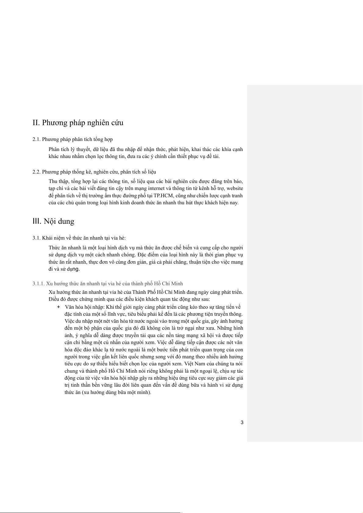 của các chủ quán trong loại hình kinh doanh thức ăn nhanh thu hút thực khách hiện nay. III. Nội dung