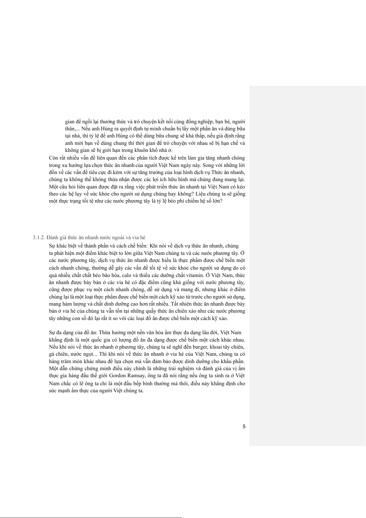 3.1.2. Đánh giá thức ăn nhanh nước ngoài và vỉa hè .................................................... 5