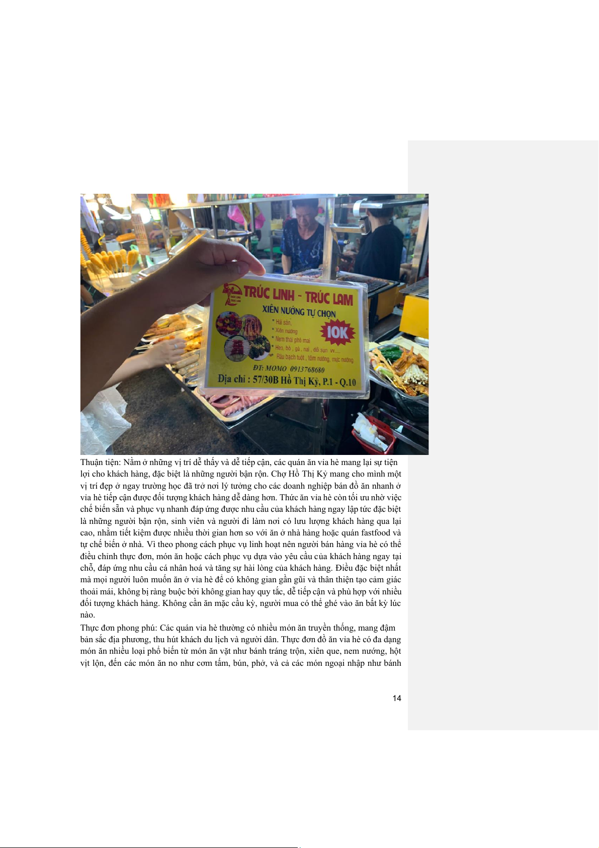 giúp mở rộng phạm vi khách hàng cho quán ăn vỉa hè. Ngày nay, nhiều người, đặc biệt là