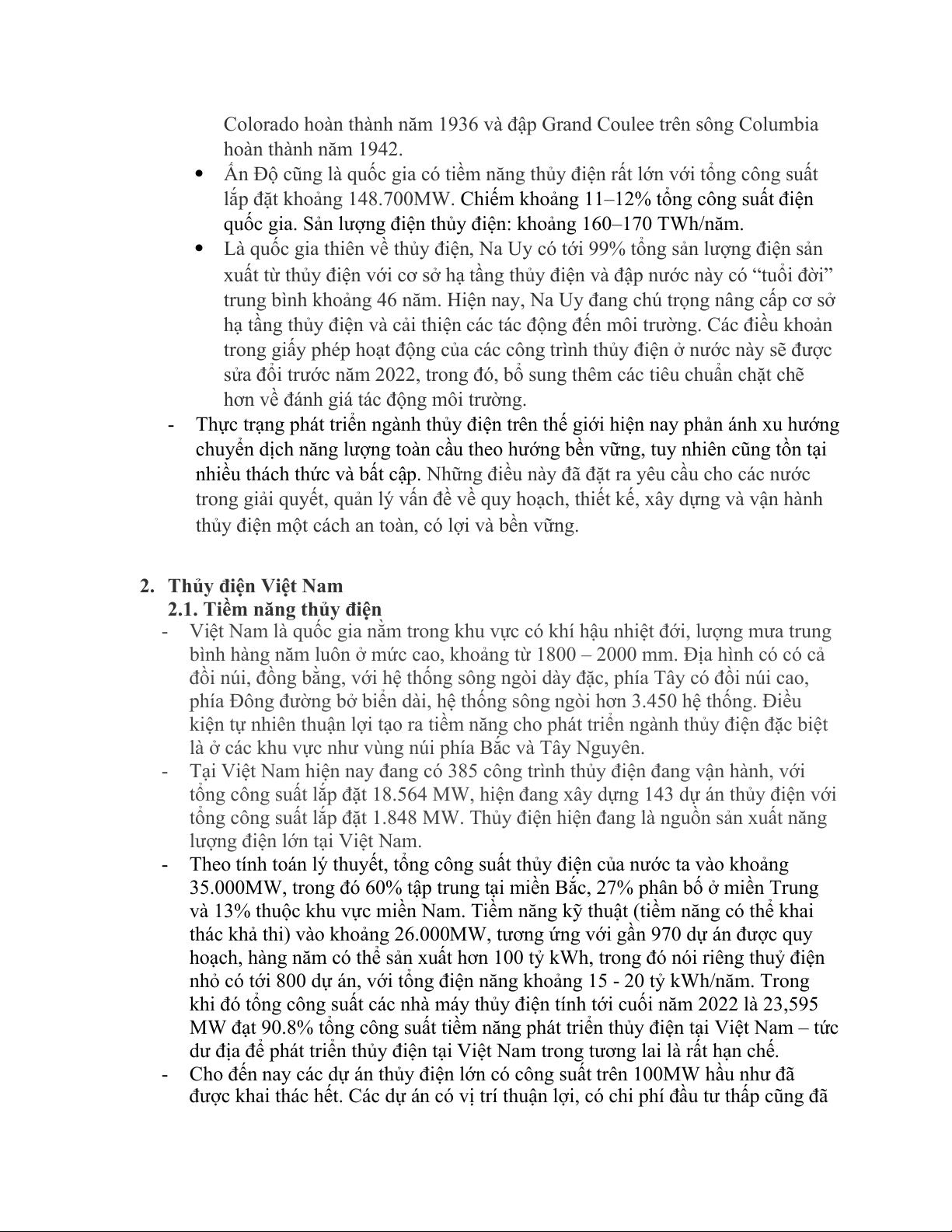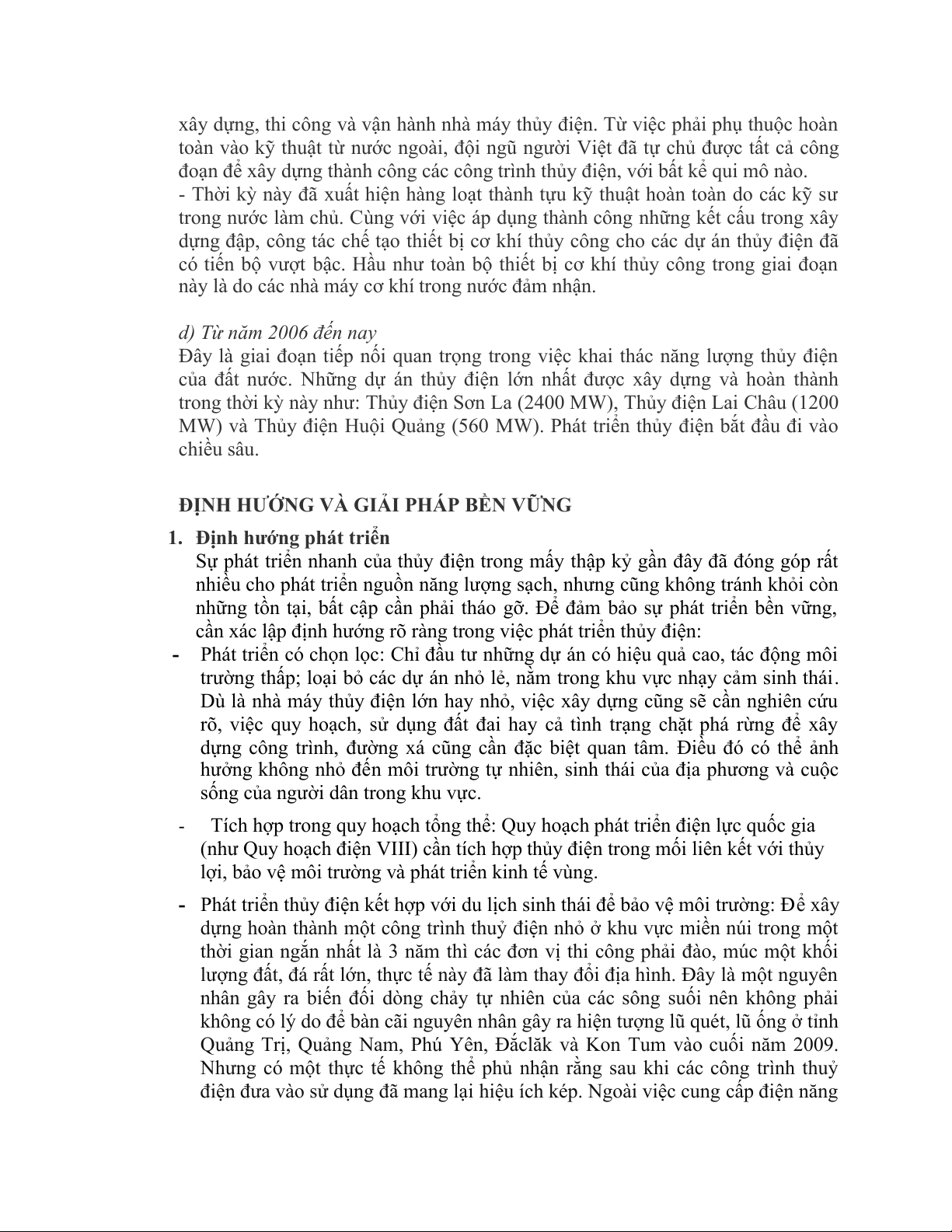 - Cho đến nay các dự án thủy điện lớn có công suất trên 100MW hầu như đã