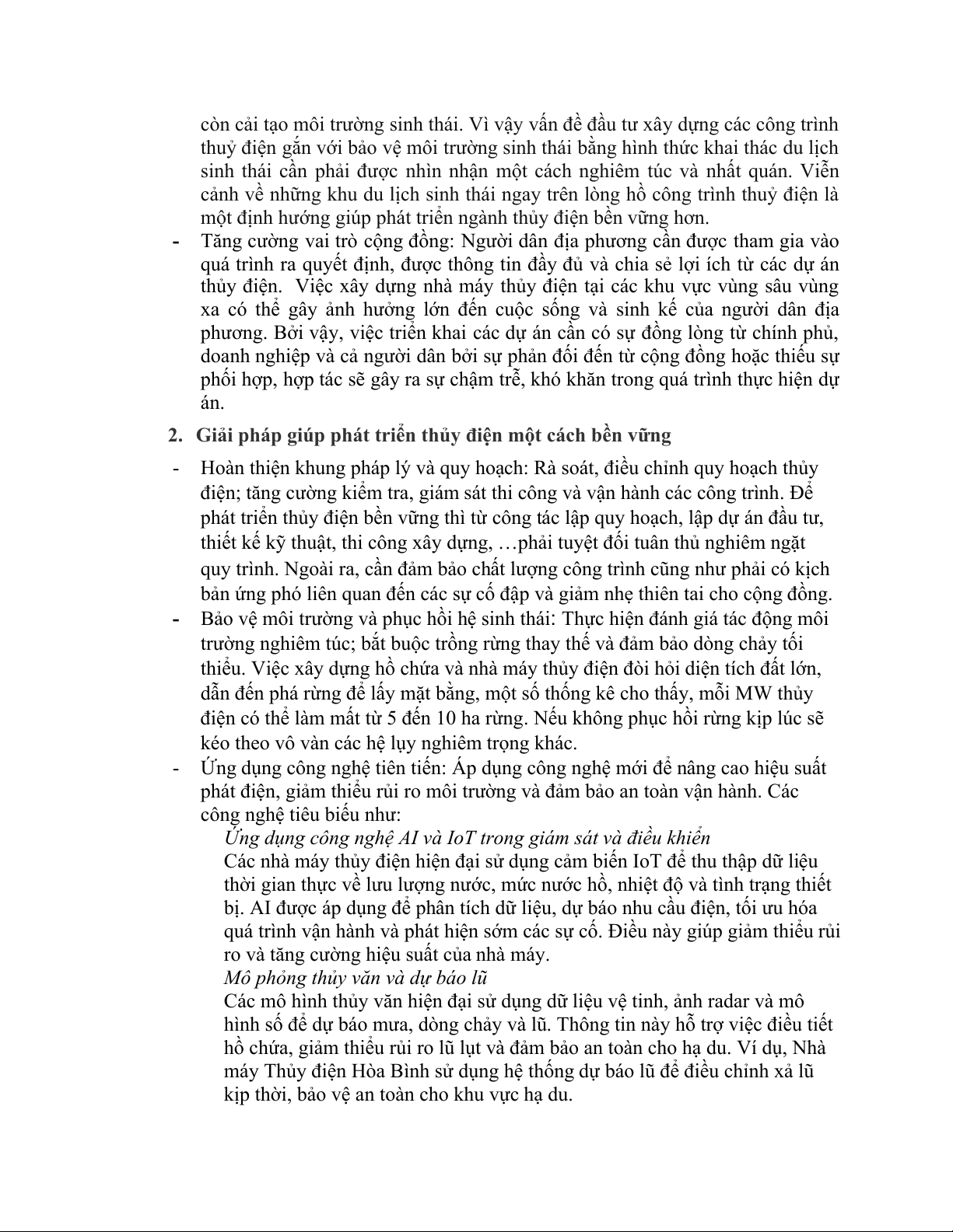 2. Giải pháp giúp phát triển thủy điện một cách bền vững