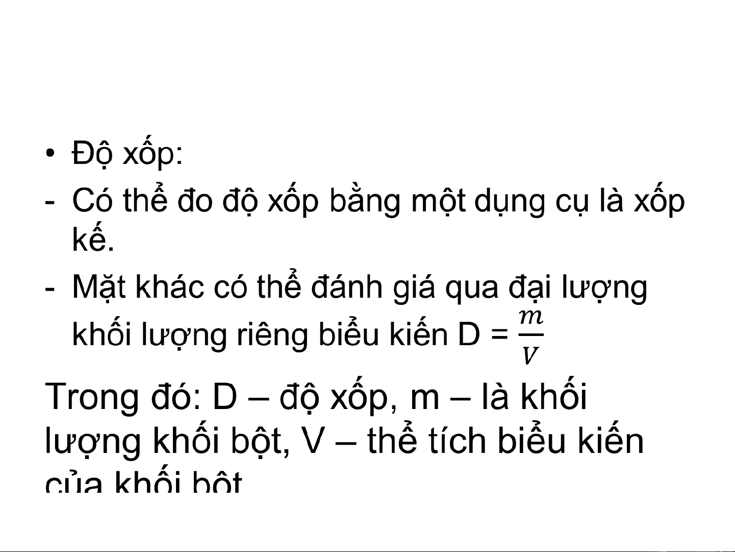 • Độ xốp của khối bột phụ thuộc vào thể tích
