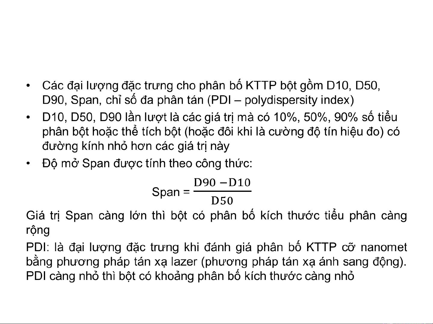 - Các phương pháp đo kích thước tiểu phân thông dụng:
