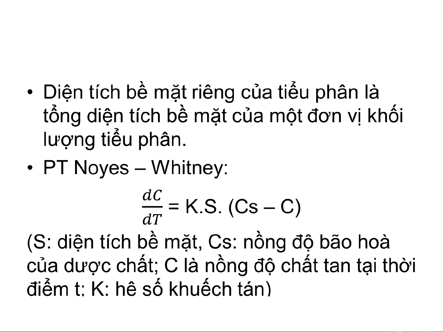 • Diện tích tiếp xúc với môi trường hoà tan lớn nên có SKD cao hơn