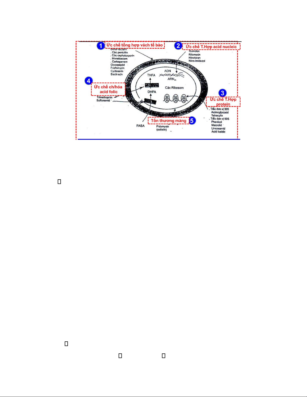 Hình 1. Cơ chế tác dụng của các nhóm kháng sinh chính 1.5. Phân loại