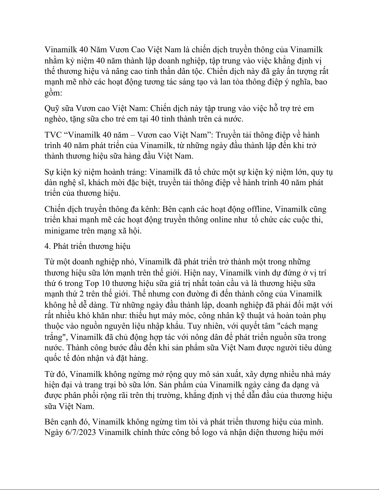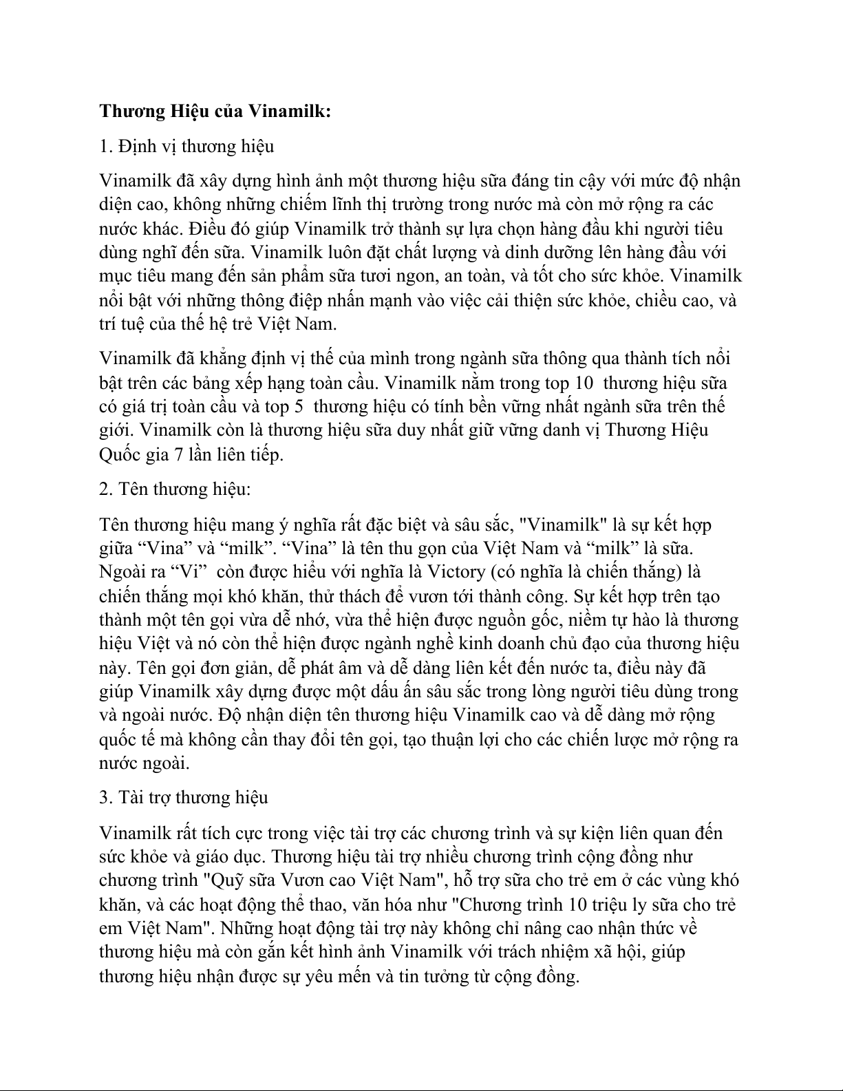 nước khác. Điều đó giúp Vinamilk trở thành sự lựa chọn hàng đầu khi người tiêu