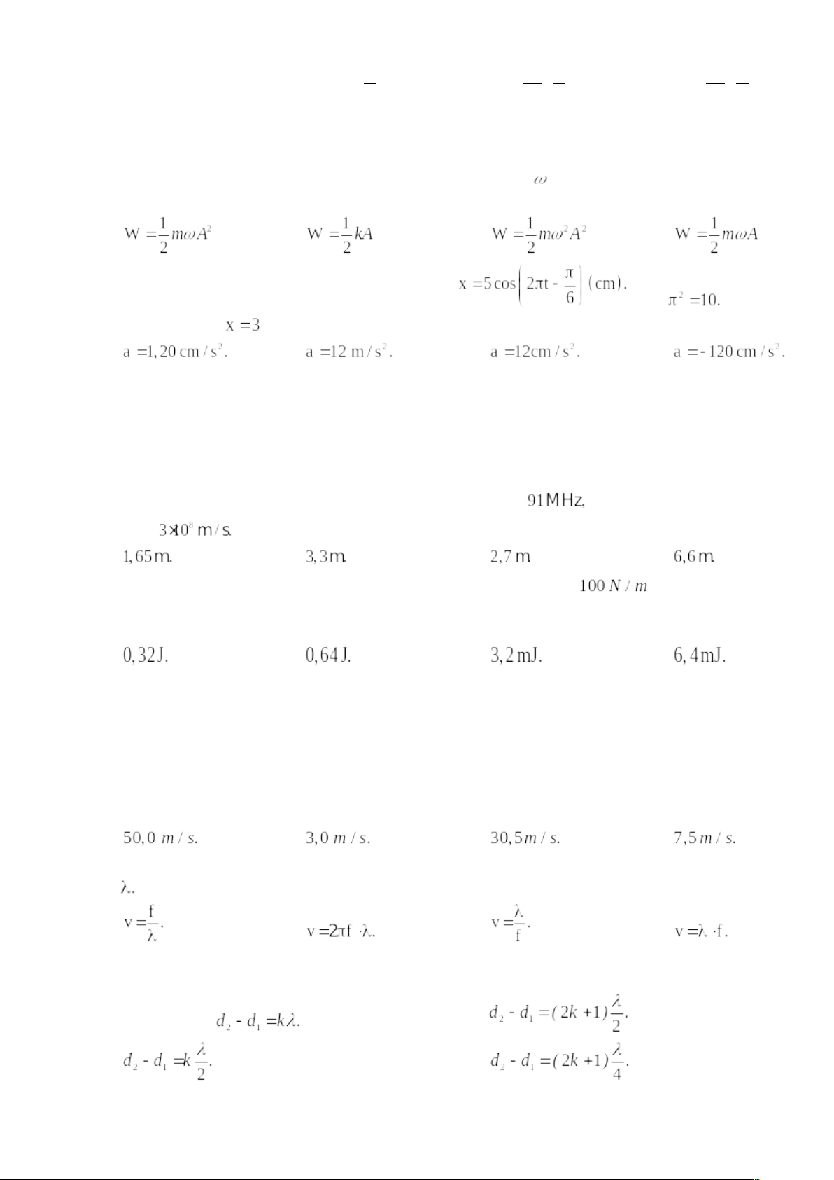 Câu 8. Gọi k là độ cứng của lò xo, A là biên độ dao động, là tần số góc. Biểu thức tính cơ