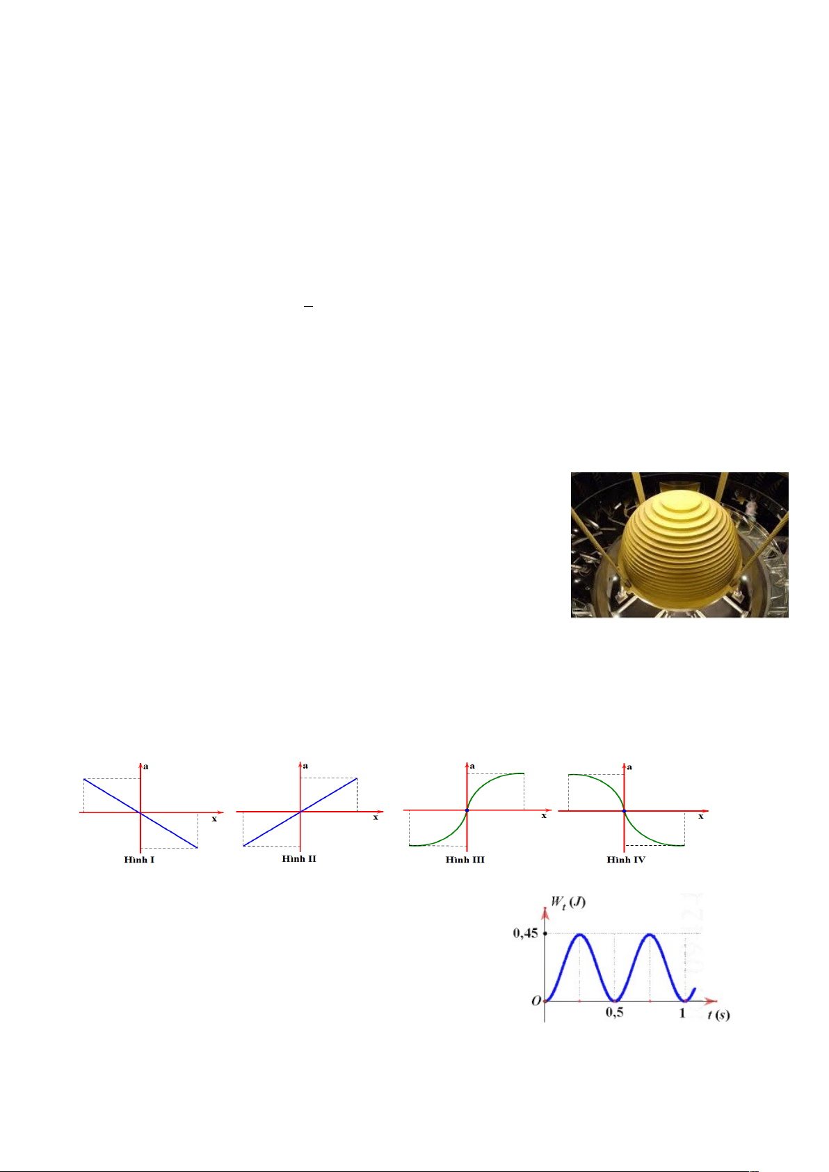 Câu 3. Vận tốc của một vật dao động điều hoà khi đi qua vị trí cân bằng là 1 cm/s và gia tốc của vật khi ở