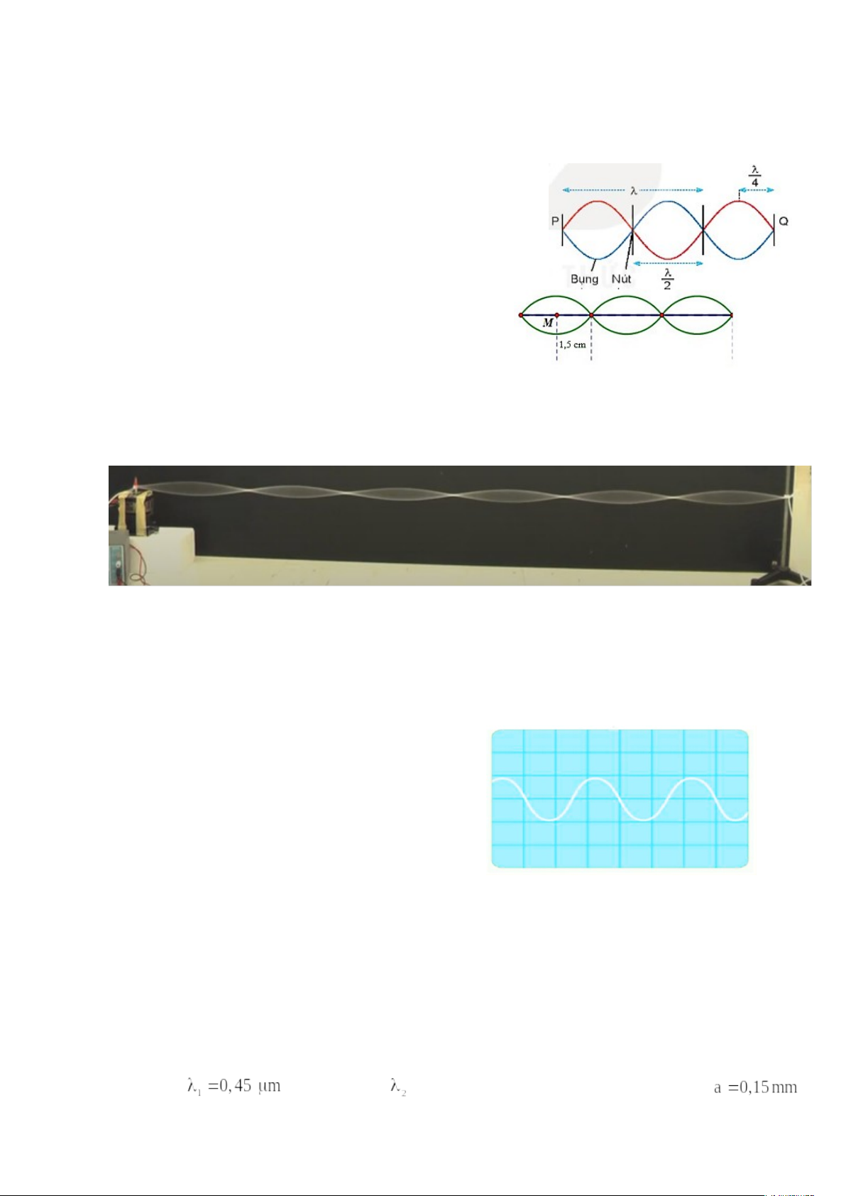 Câu 1. Hình bên mô tả kết quả thí nghiệm tạo sóng dừng trên một sợi dây đàn hồi. Biết tần số mà cần