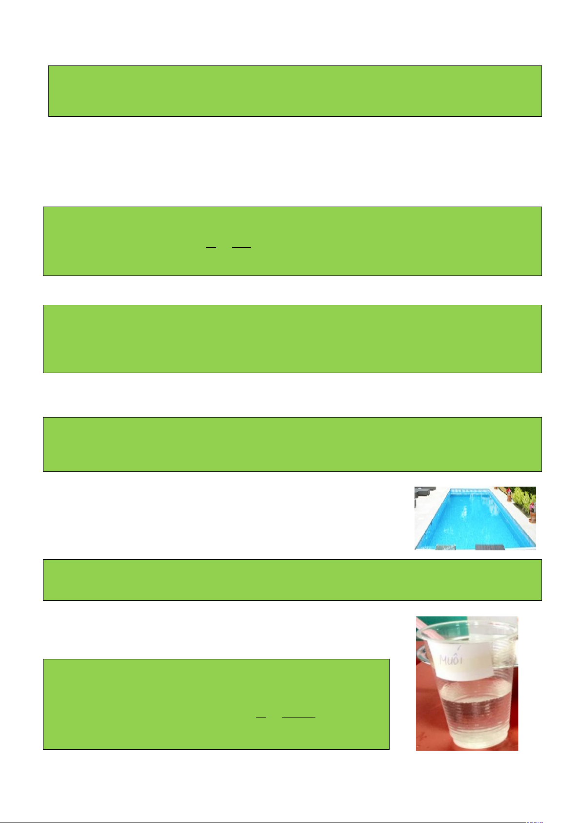 Câu 5: Mỗi nhóm học sinh hãy hòa 50 g muối ăn vào 0,5 L nước