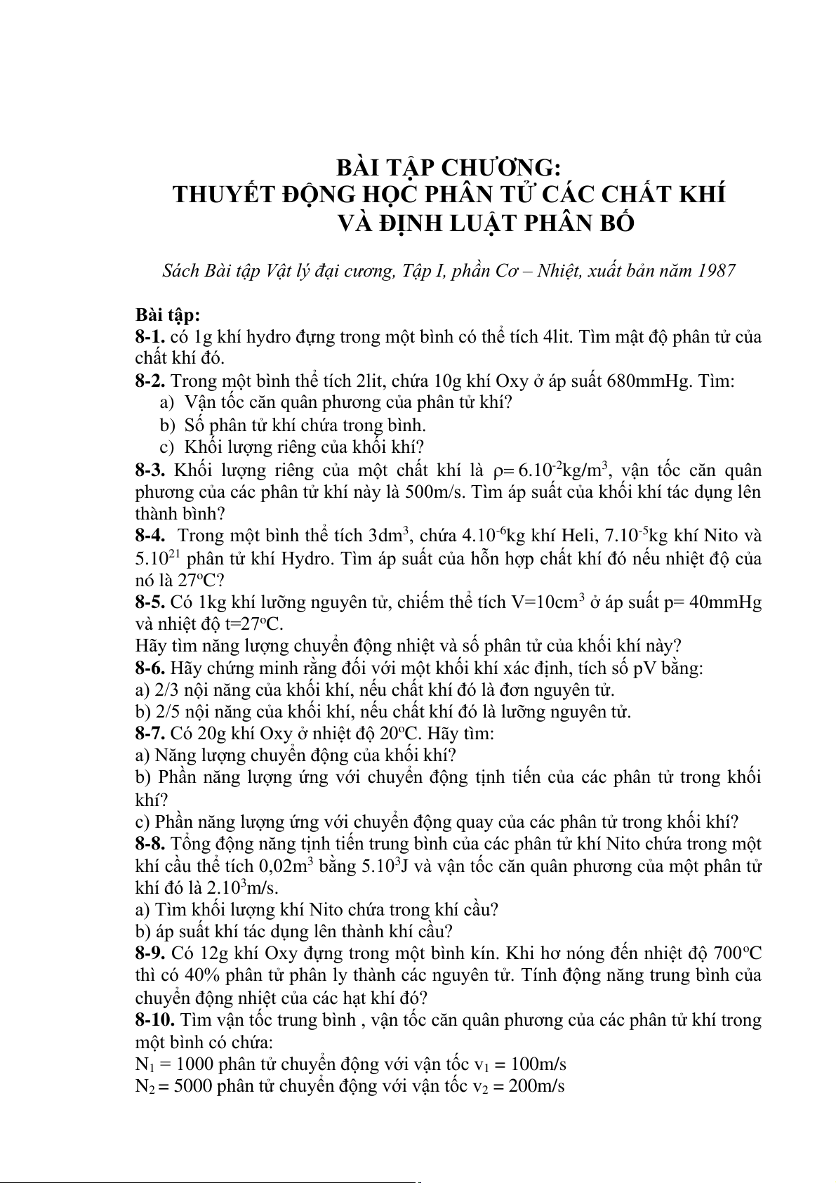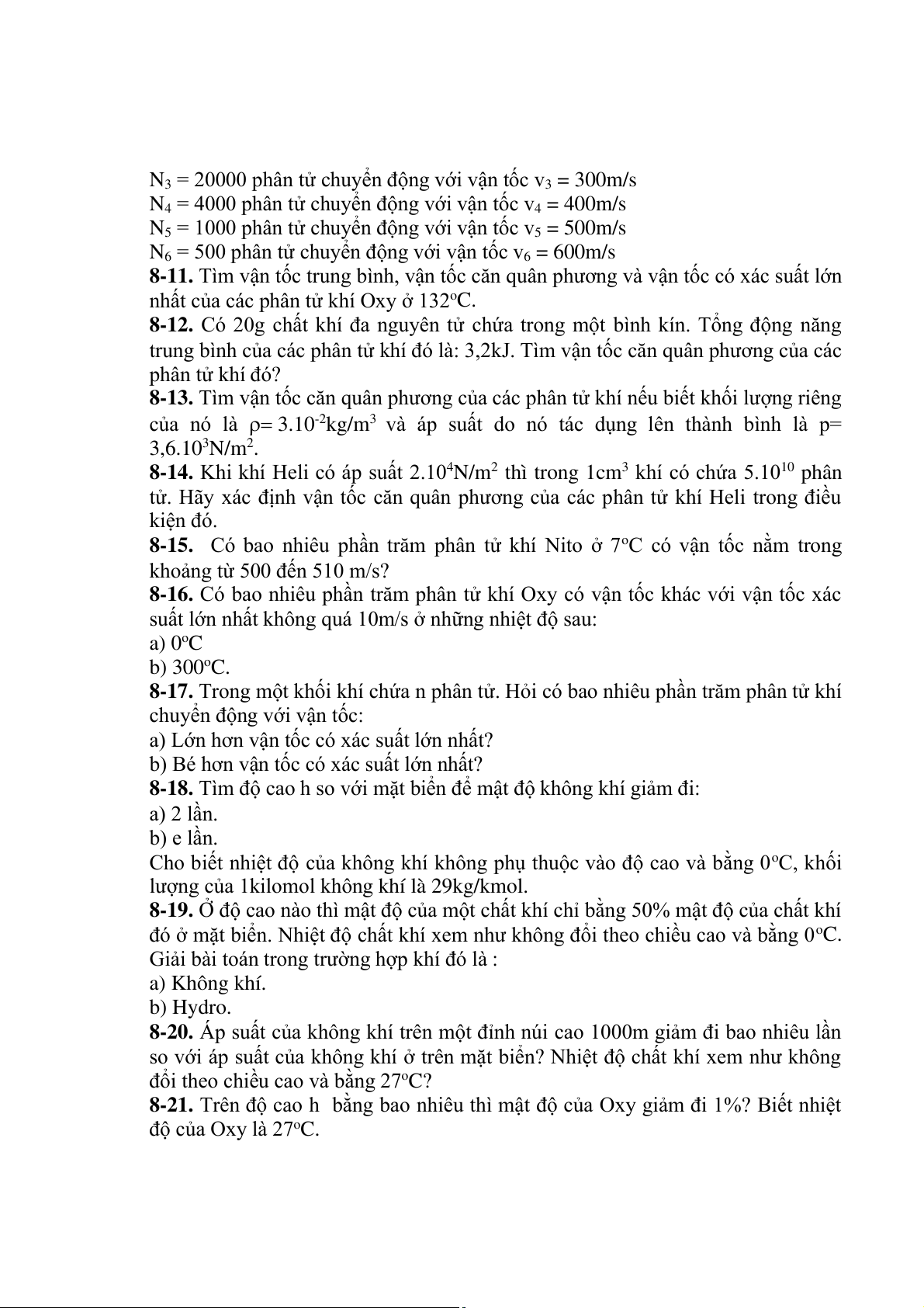 8-17. Trong một khối khí chứa n phân tử. Hỏi có bao nhiêu phần trăm phân tử khí